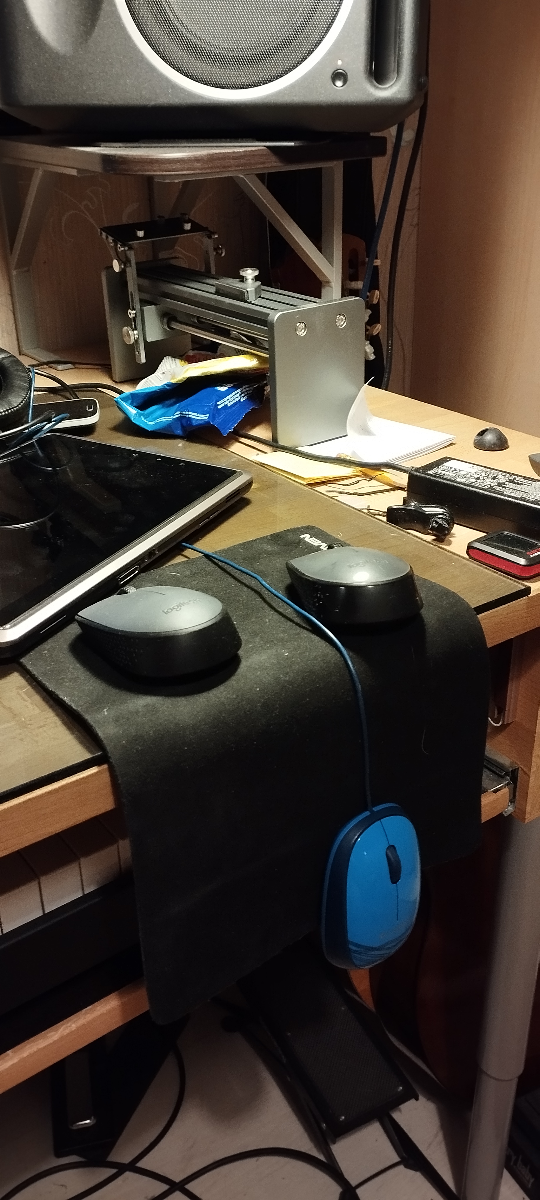 Изиняюсь, конечно, он от вашей музыки коврик встал. Дайте послушать.Кстати на верхнем фото не видно, сделал себе по советам форума подиум, чтобы рука с мышью полностью лежала от локтя, реально удобнее стало
