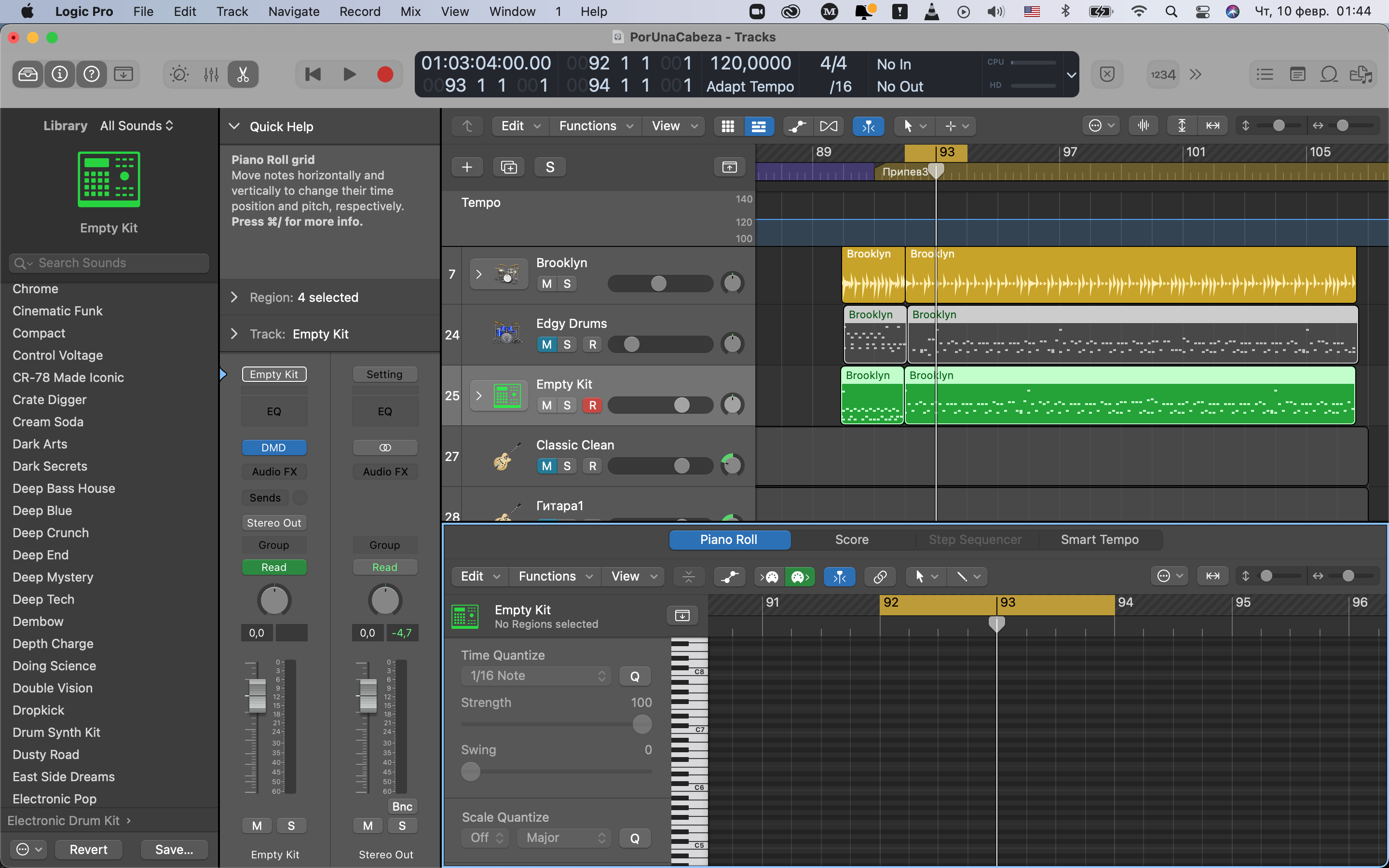 Создаю партию drumm. Ни с того ни с сего играет с отставанием. При этом стоит ровно, все остальное по метроному. Пыталась перевести в миди, играет также. При этом piano-roll перестал показывать что-либо.