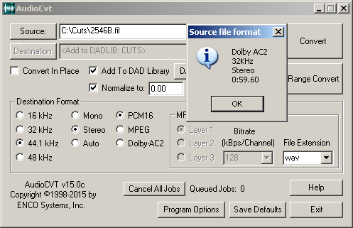 Вот тут по ссылке человек тоже мучался с AC-2, и DAD ему сконвертировал пример 2546B.wav. Я посмотрел приложенный файл и пропустил через LIB2WAV.EXE, получился 2546B_.WAV - и через MediaInfo видно, что это действительно AC-2. https://www.dvinfo.net/forum/all-things-audio/538465-dolby-ac-2-codec.html