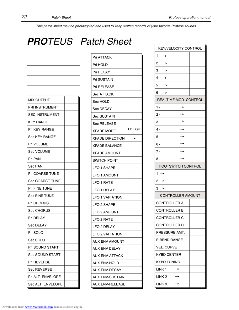 В Proteus патч состоит из двух инструментов, а так же несколько десятков параметров для каждого их них, включая громкость, эффекты, начало волноформы, огибающие, а так же смешивание между ними и модуляции.