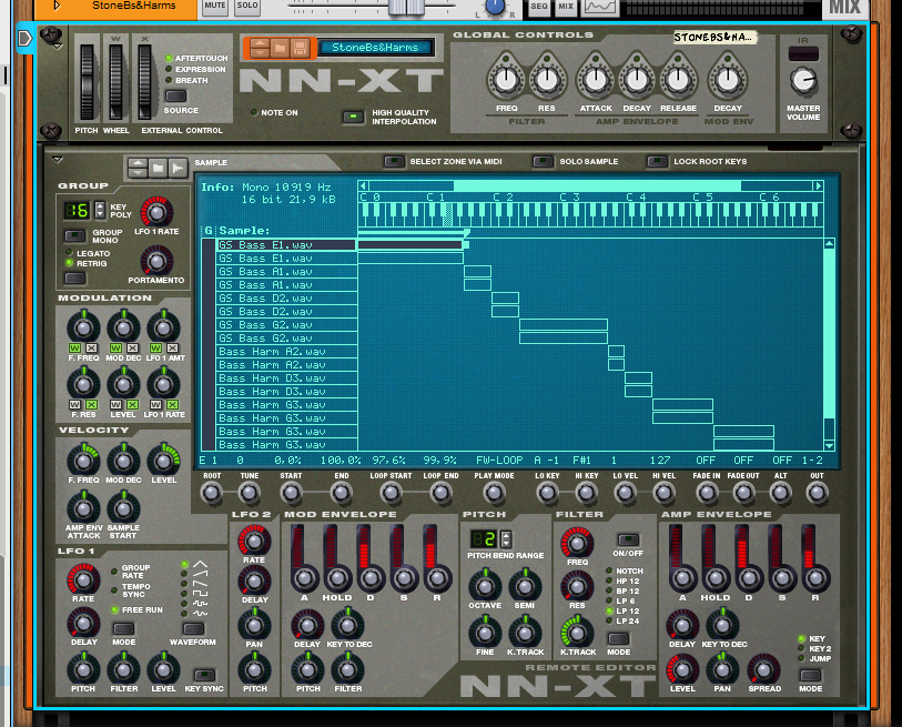 Т.е., чтобы сделать аутентичный инструмент, нужно семплировать только один инструмент из патча в моно, отключая в нем все настройки и эффекты. Полученные семплы обрезать так, чтобы в них осталось начало и "тело" звука, в котором необходимо выбрать правильно место для закольцовывания сустейна, а не делать ноту в десяток секунд.
