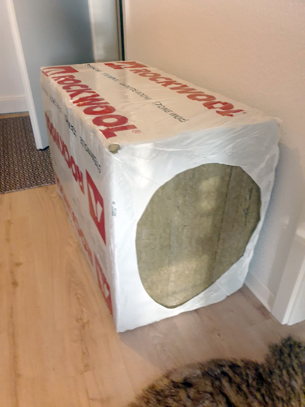 3. Вату брал Рокволл сначала 40, но проще было брать 80. Нарезаем и запихиваем как угодно внутрь. Прибиваем последнюю сторону простыней окончательно, закрывая ловушку.