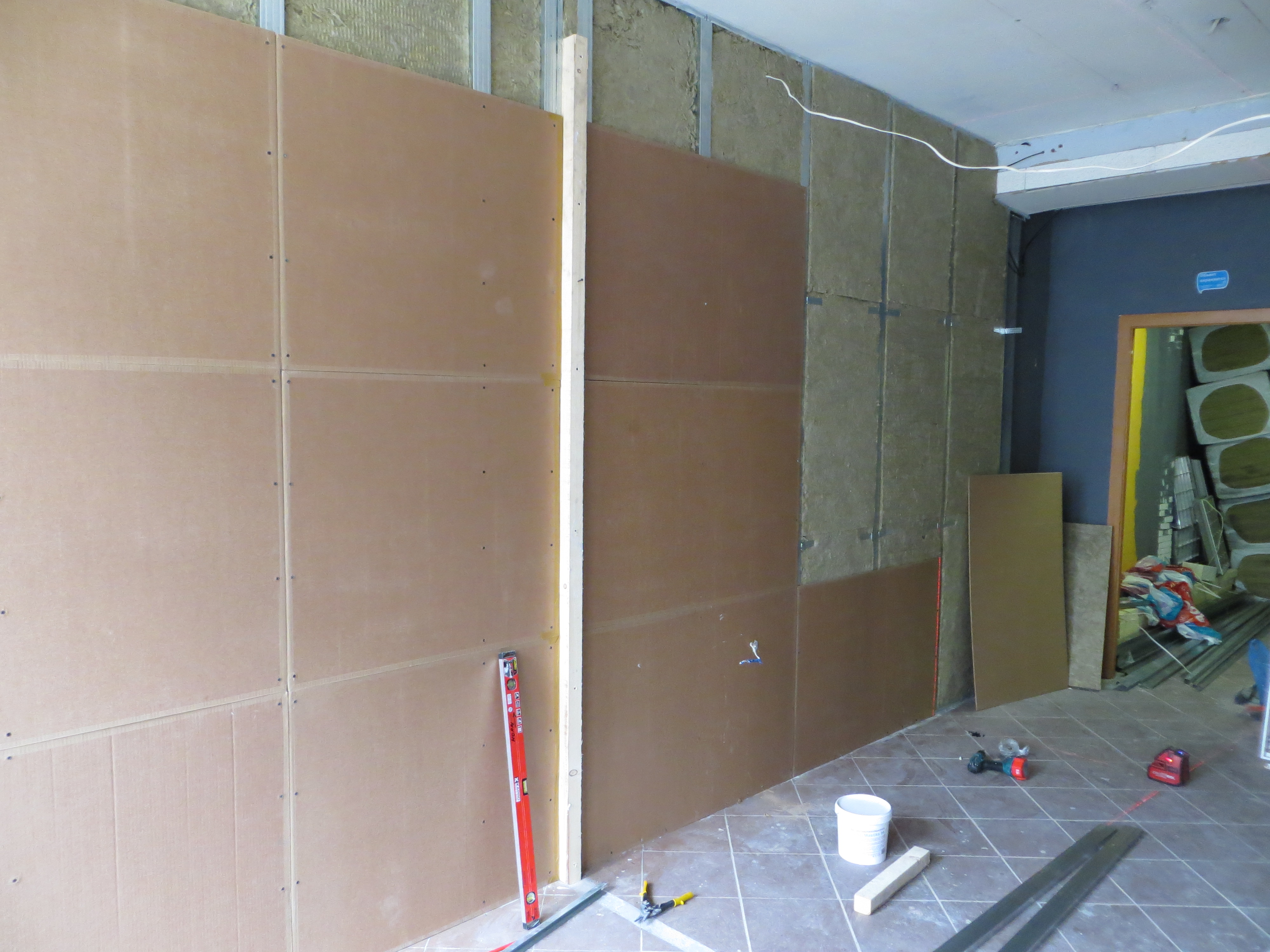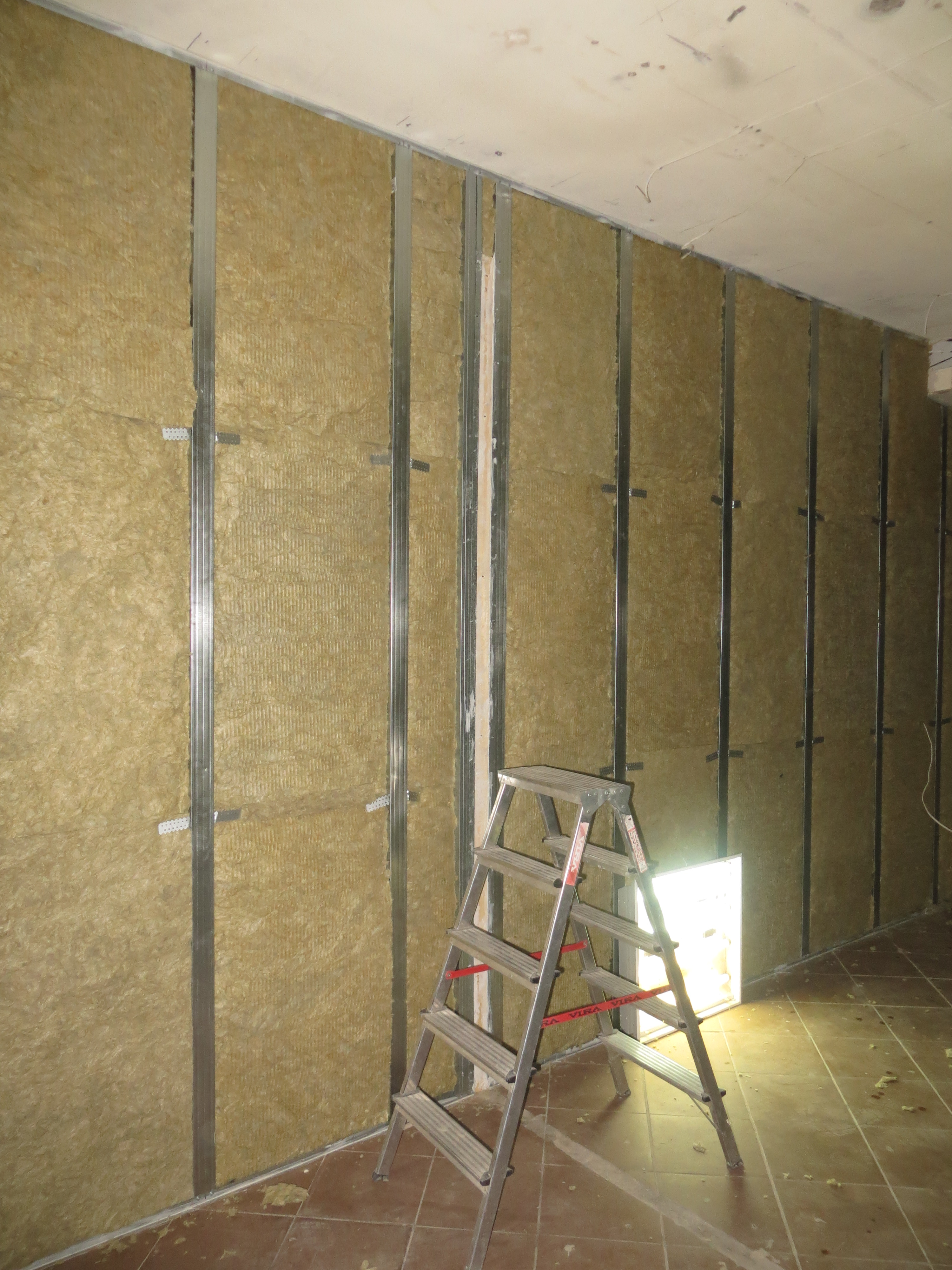 Не, не так. Минвата, звукоизоляционная панель (с песочком), минвата, перфорированная акустическая панель (ГКЛ+ткань). Чтобы соседи были шёлковыми.