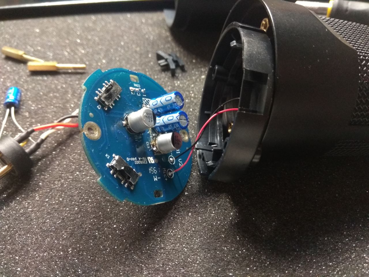 Купил микрофон, всё было нормально, через некоторое время после 4-5 часов работы он стал терять звук. После отдыха, снова начинает работать но всё те же 4-5 часов. Почитал форум, сказали менять кондёры, такие-же я не нашёл, но нашёл с теми же характеристиками. Во время замены, решил оставить два оригинальных кондёра(т.к. у них не была потеряна ёмкость), работать стал ещё хуже, 3-4 минуты и затухает, а в добавок ко всему если дыхнуть в микрофон, появляются шумы(на 3-4 секунды), если говорить то всё ок.
