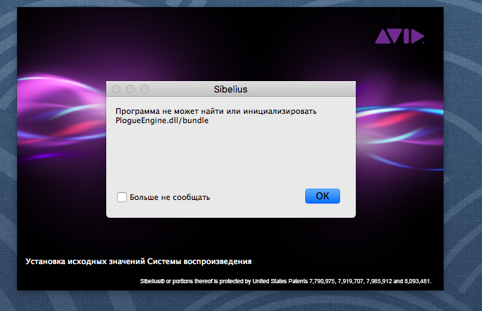 Здравствуйте! Случилось не понятное явление. На протяжение многих лет проблем с сибелиус, разными версиями, не было. Вчера включил и совсем ничего не понял, звука нет, настройки миди, аудио не отображаются. При загрузки не может найти PlogueEngine.dll/bundle.(не знаю что это, и почему в маке dll) Миди драйвер на месте. В инете по этому вопросу ответа не нашёл. Переустановка программы и системы не помогла. Ультиматум ведет себя так же. Может кто то наблюдал такое явление. Спасибо! Mac Pro (Mid 2010) Sierra