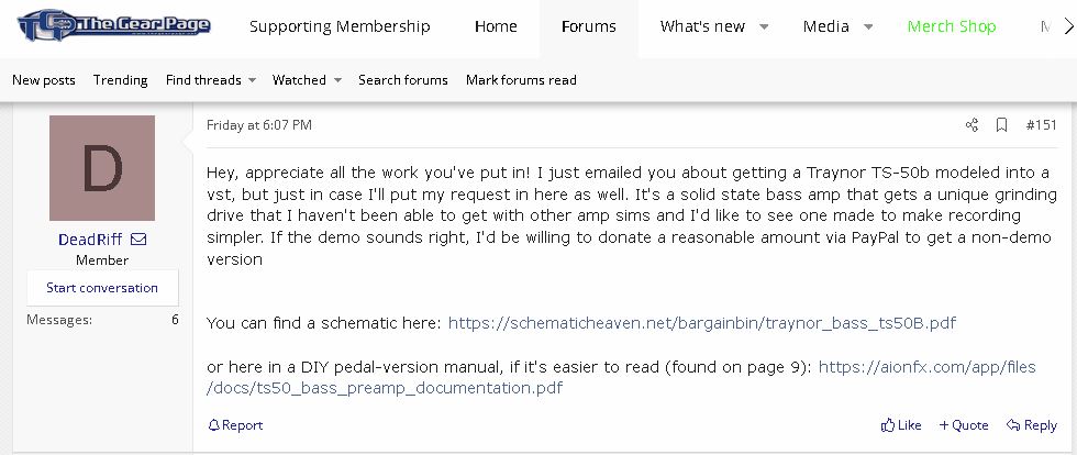 Плагин на основе Traynor TS-50b