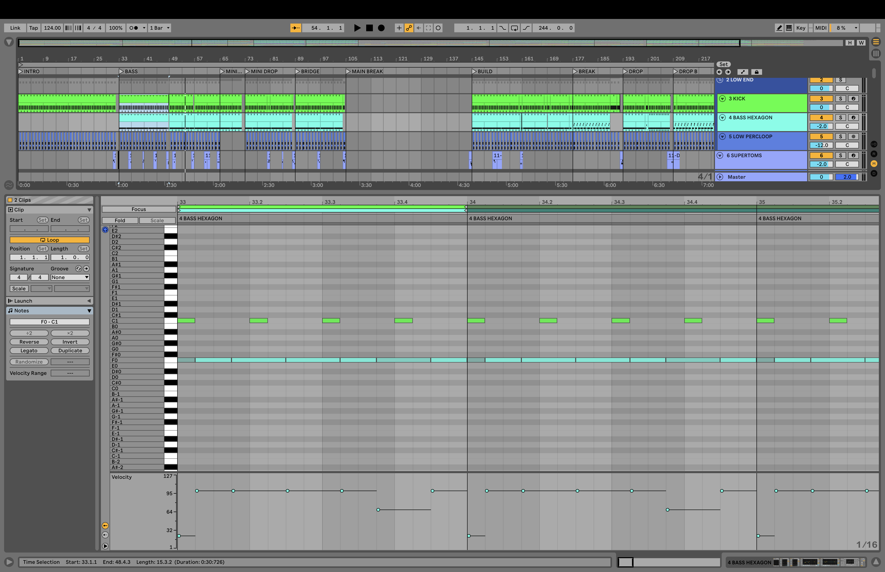 Частотный конфликт в НЧ диапазоне решается за счёт разного Velocity отдельных нот баса (нестареющая классика)