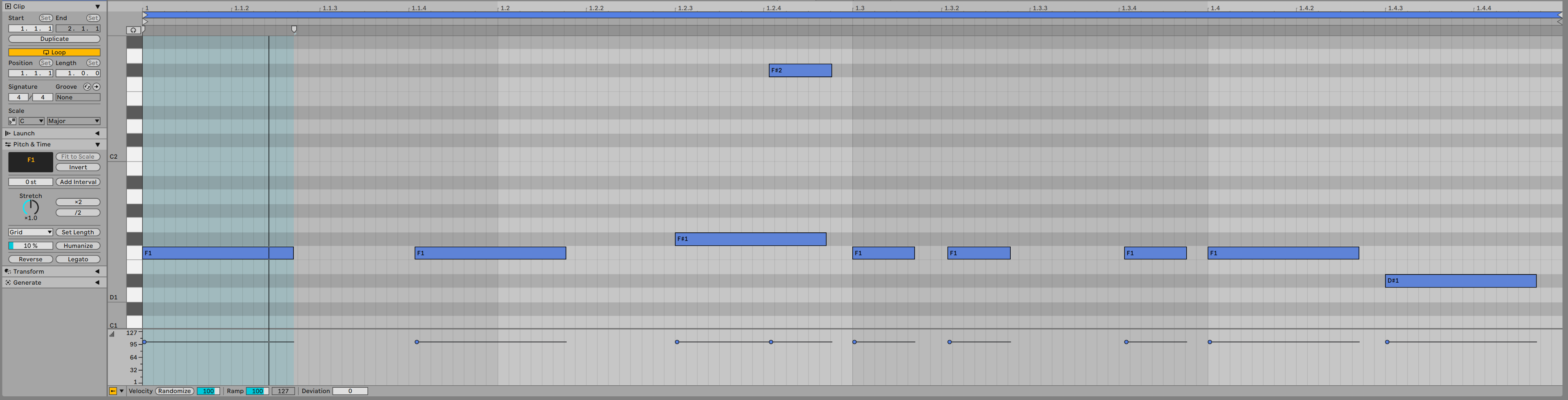 Забыл добавить, что ноты баса частично сдвинуты относительно сетки, обратите внимание.