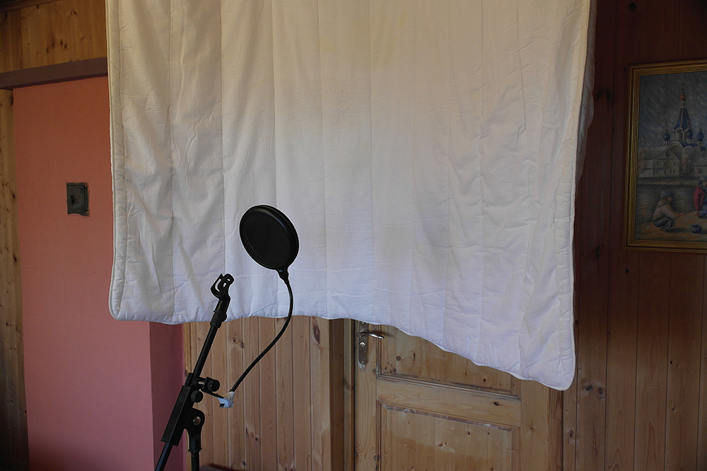 Я записал тест на чувствительность таких микрофонов. А также записал сравнительный тест этих микрофонов в двух вариантах: в неподготовленном помещении и в том же помещении, но за спиной чтеца повешено одеяло с отступом от стены примерно в пол метра.
