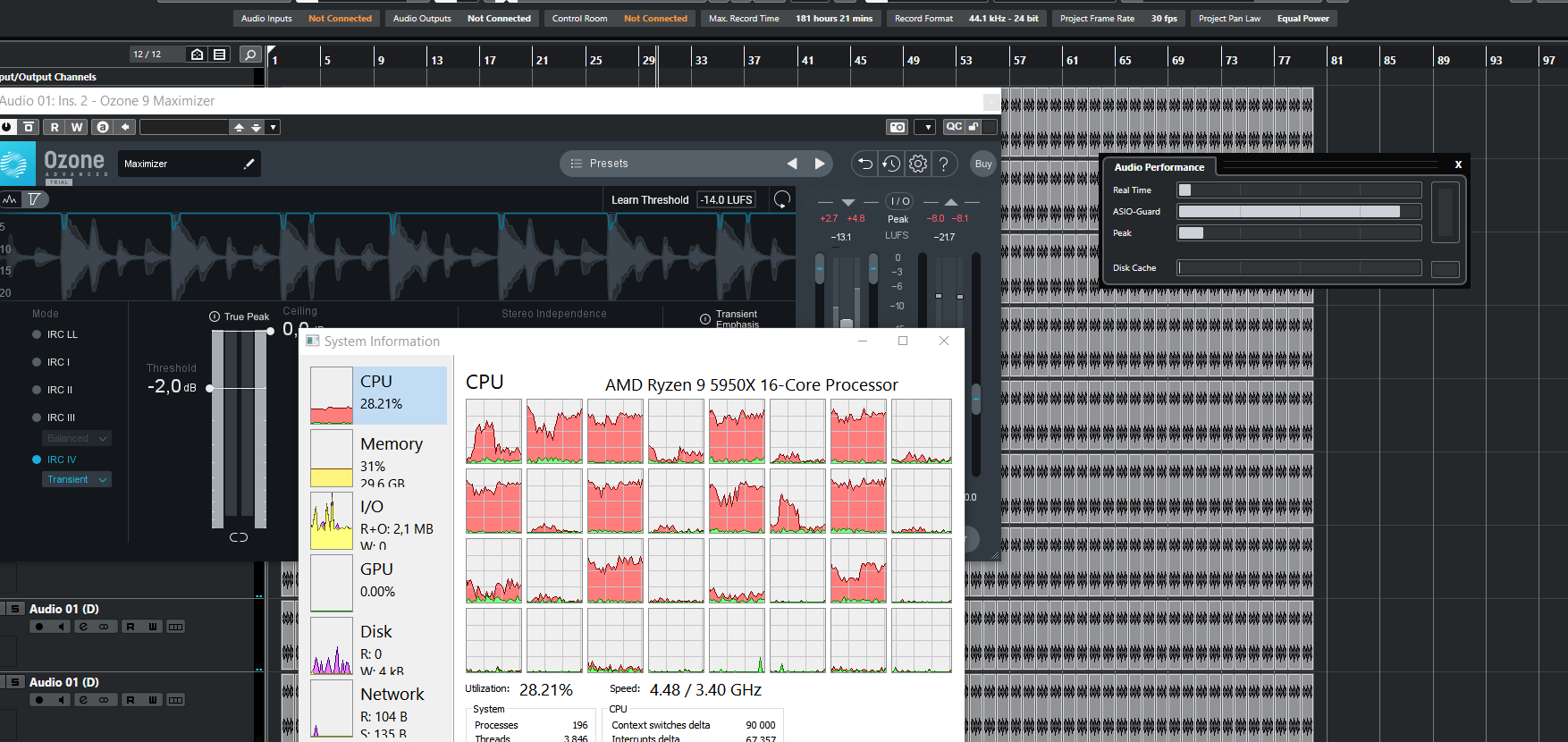 Лучше всего включить гитару во вход и обработку ампсим в инсерт, сразу "всё понятно"