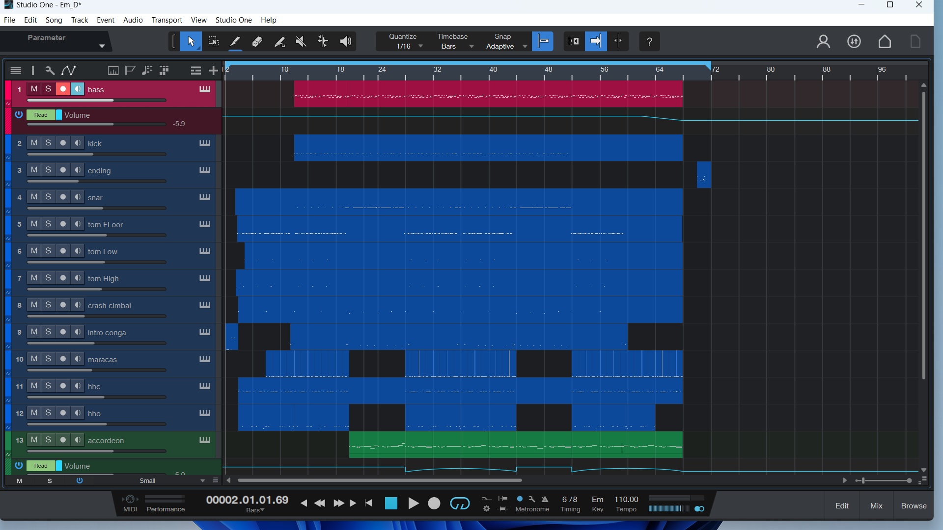 Не стесняйтесь, Что бы каждый инструмент был на своей дорожке: kick, snar и тд.