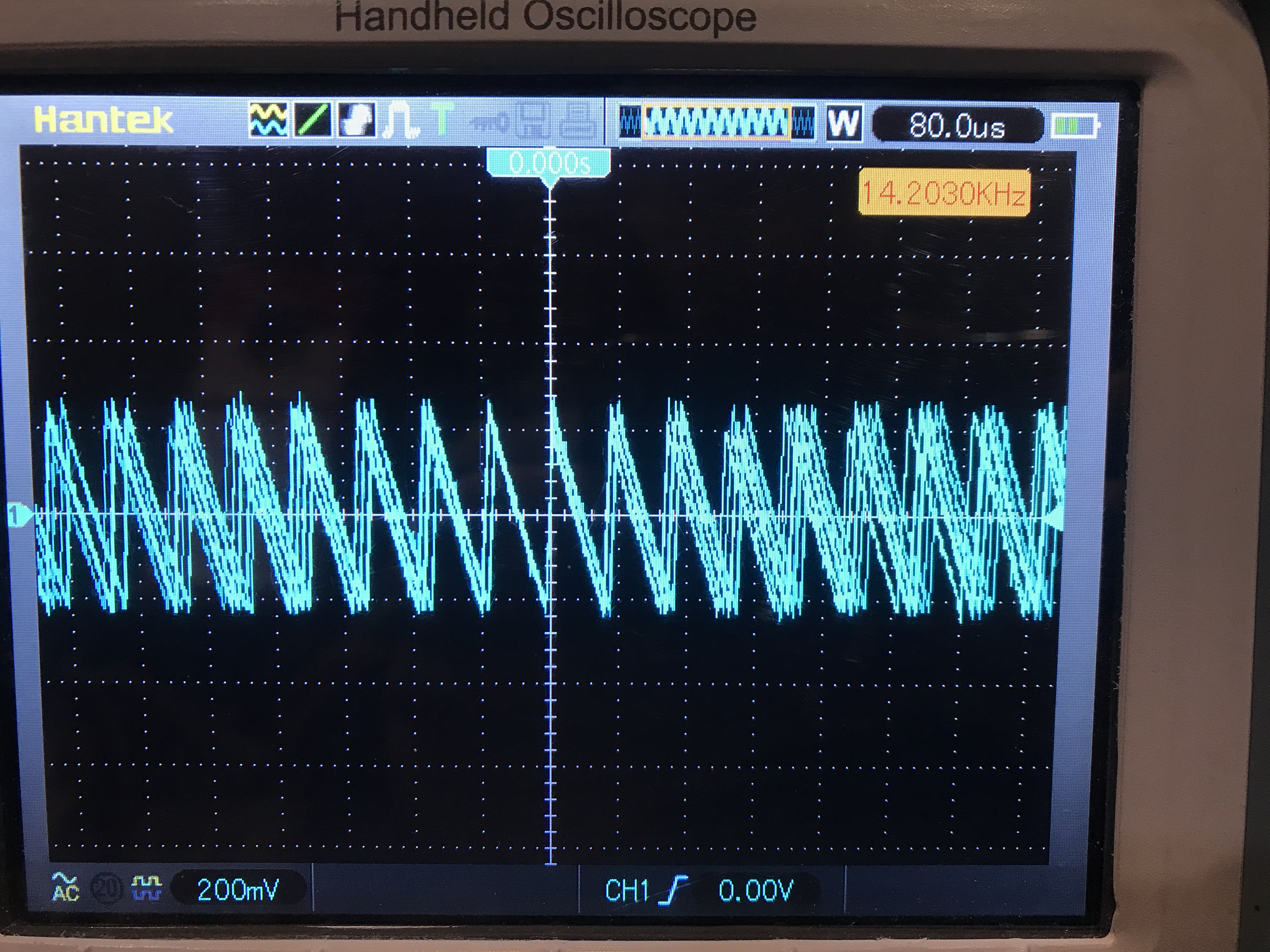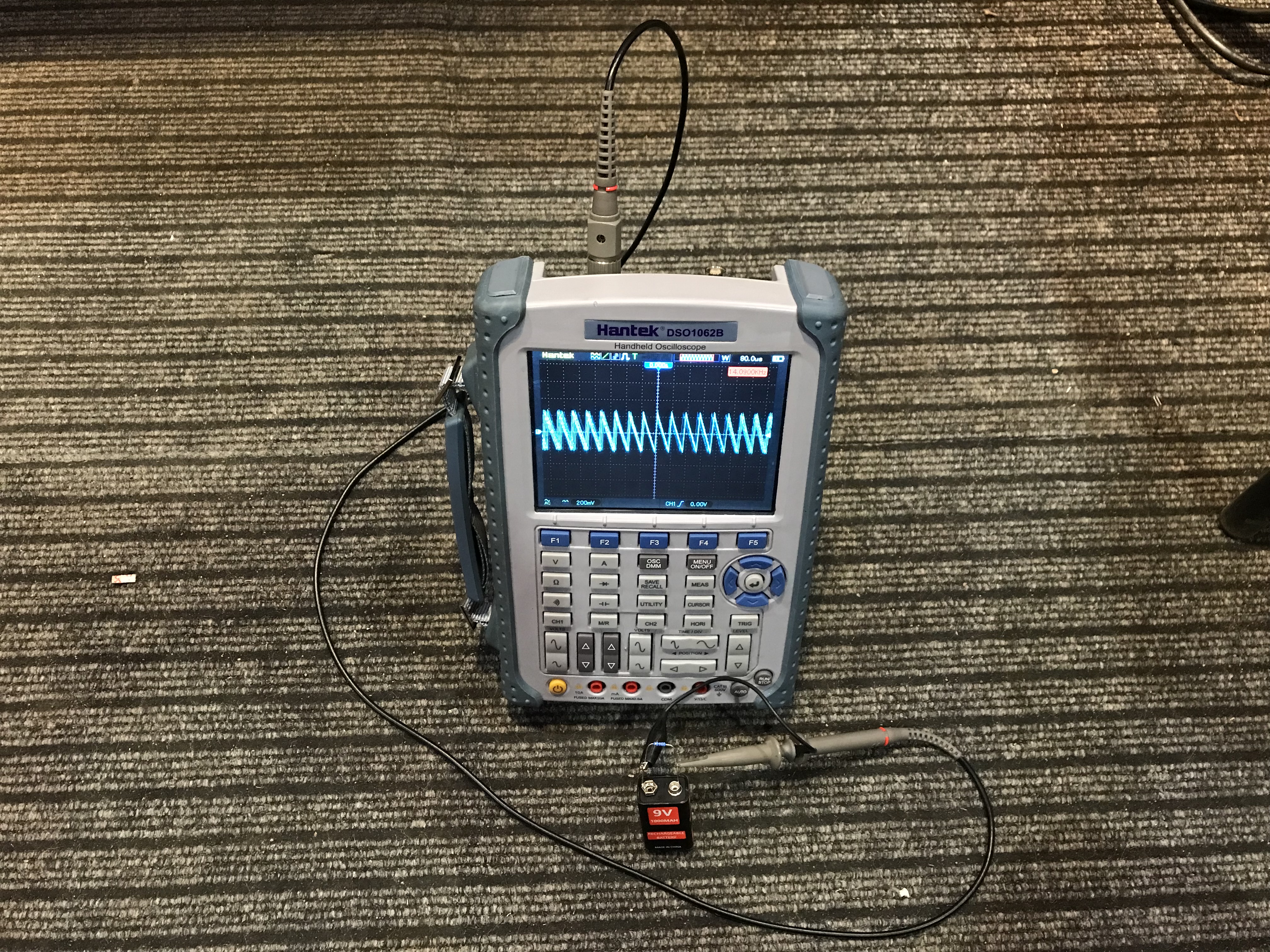 Исследовал батарейку и здрасьте - пульсация в районе 14 кГц амплитудой почти 0.5В (p-p) :