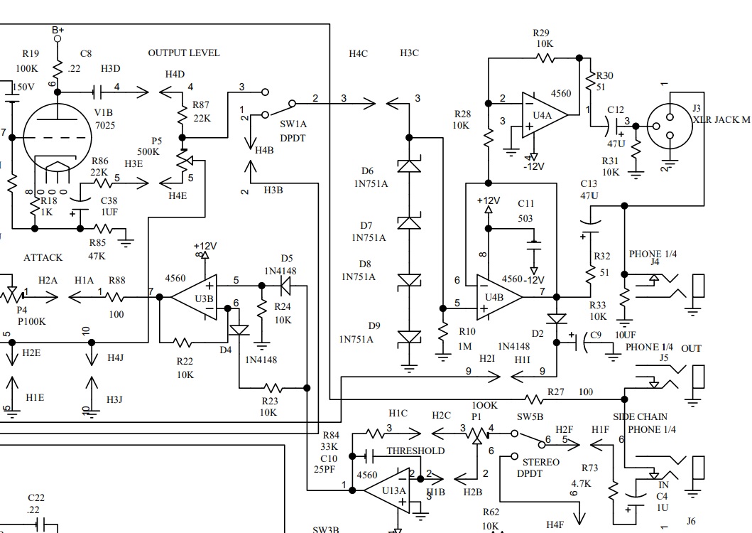 -я уже писал для защиты на всякий пожарный , а так да на пиках это все будет работать как жесткий клиппер, впрочем разница невелика т.к у 4560 все одно выход при +15в питании не более +-12в ,там емкость 200пф надо заменить на 10пф если не меньше это точно а не стабилитроны, тем более что питание ламп не 150в как я предполагал а 240в, тем паче еще и какой то перекл есть с выхода одной лампы на другую то бишь некие переходные процессы