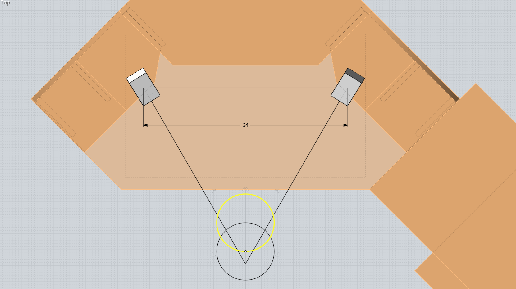 Как-то так, и вид сверху ещё нарисовал, от центров АС получается около 64 см, голова обычно ближе, но двигается)
