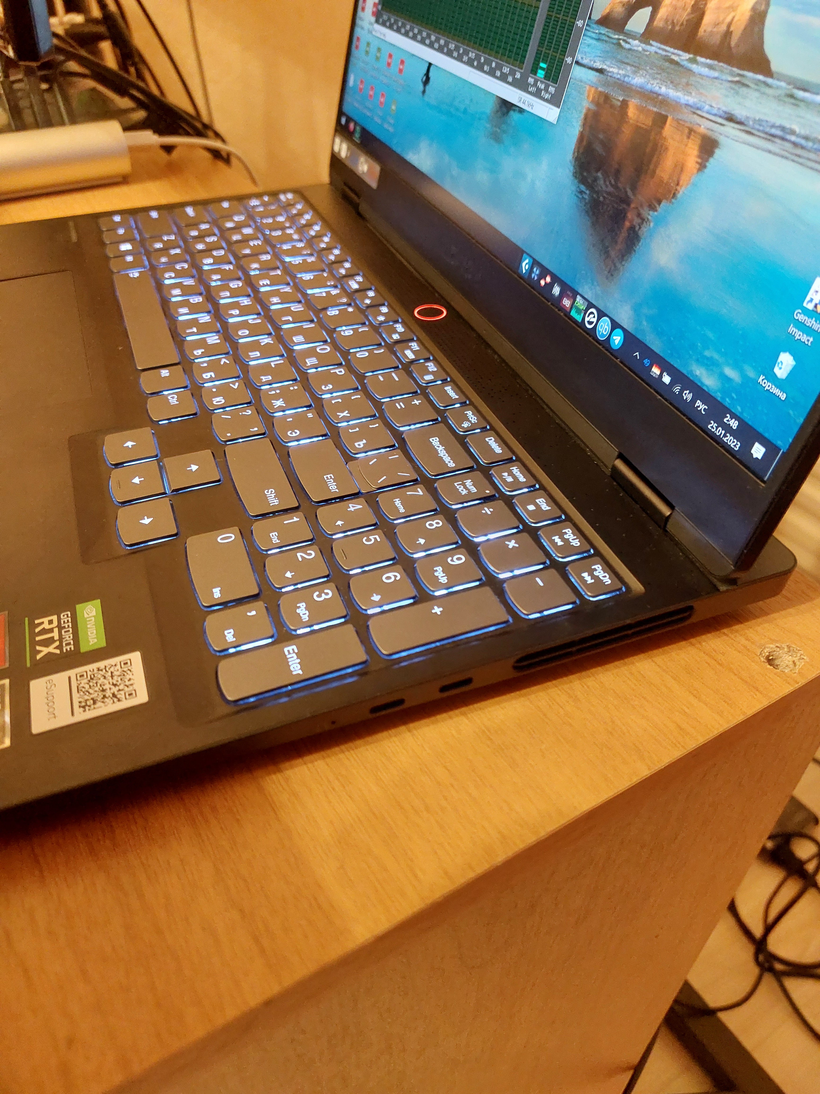 Технически состояние сейчас лучше, чем с магаза: сразу вылезли болезни Legion'ов - остаточное изображение у монитора (немного, но было), треск левого динамика, ездил в АСЦ, всё сделали, теперь идеально. Работал 99% времени от сети, батарея почти девственная, циклов разрядки было штук 5.