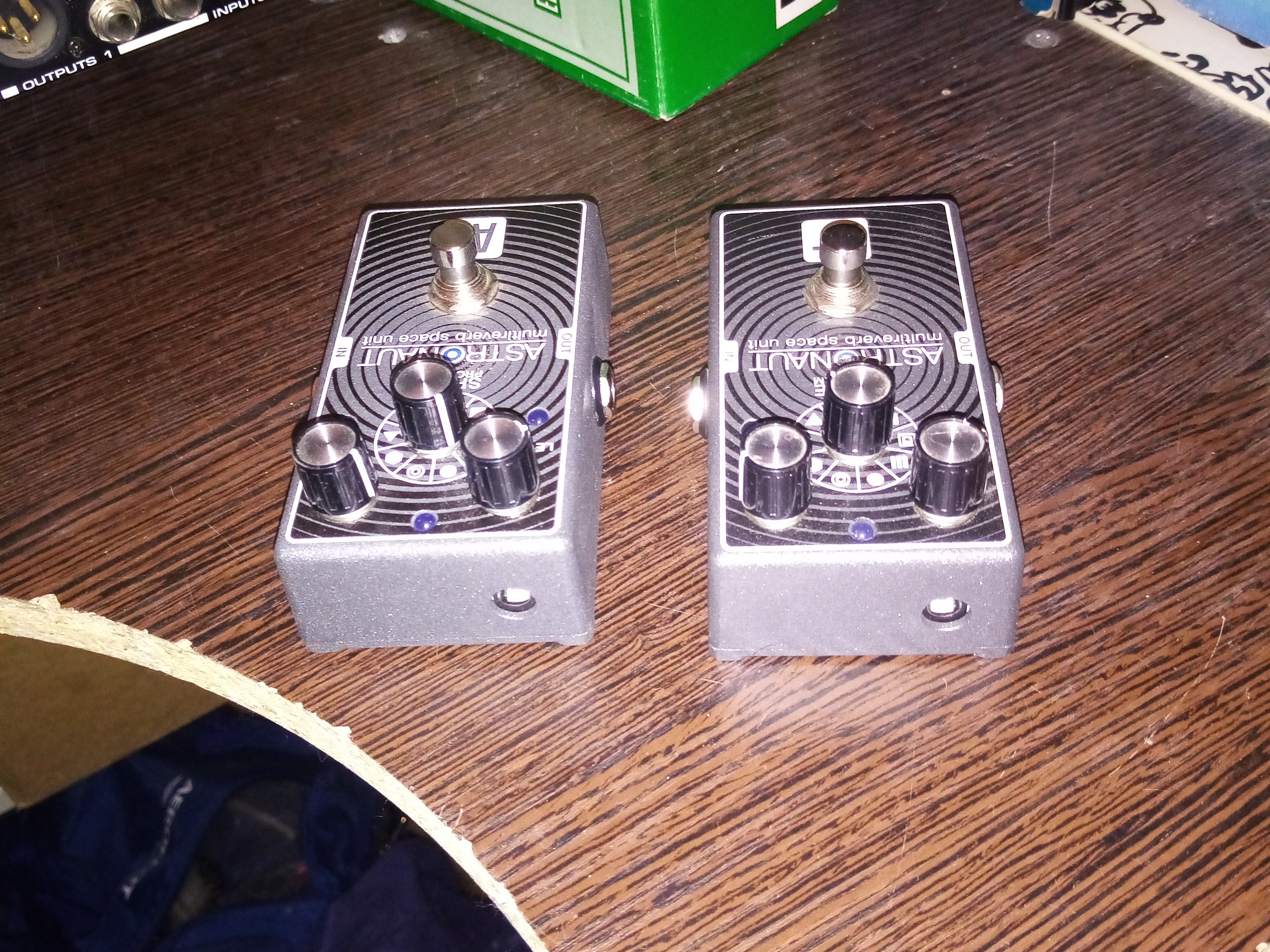 Педаль ревербератор. Только проверил и не пользовался. Есть две штуки. На одной на дне приклеена липучка и резиновые ножки.