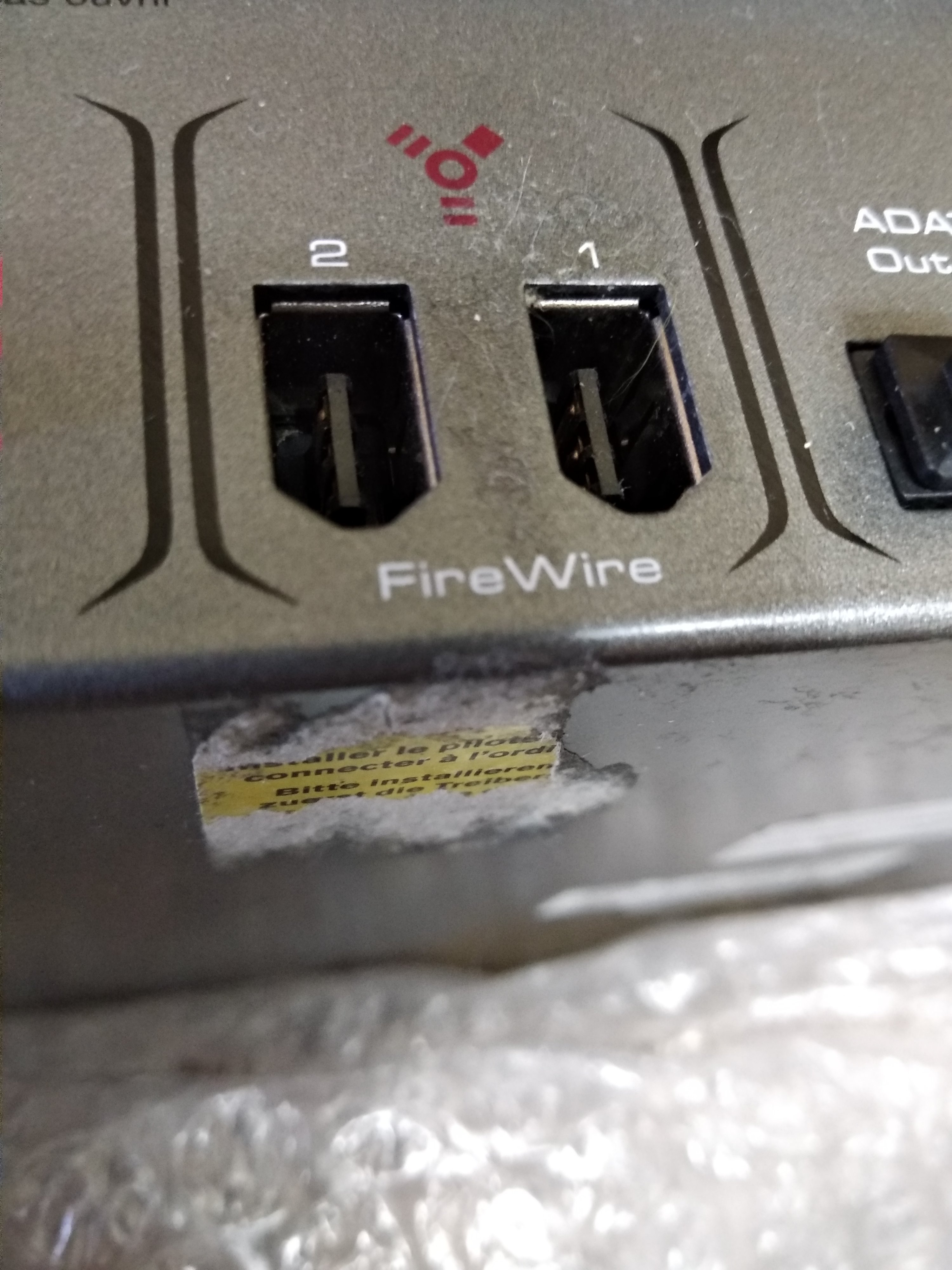 Если покупали новую мяудио, то в них всех порты наглухо заклеевали желтой наклейкой с предупреждением, а в фокусрайтах саффирах были белые наклейки с большими красными буквами и картинкой, на верхней крышке