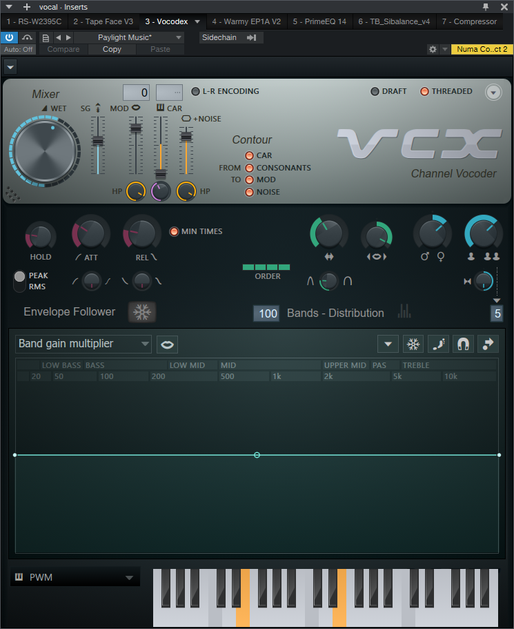 Есть трек "вокала" - wav. На нём стоит плагин вокодера.