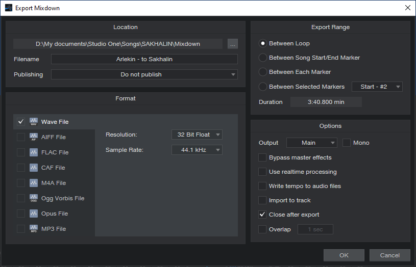 Запускаю Export Mixdown, но в полученном wav файле вокодер звучит так, как если бы midi управления не было (то-есть на одной ноте).