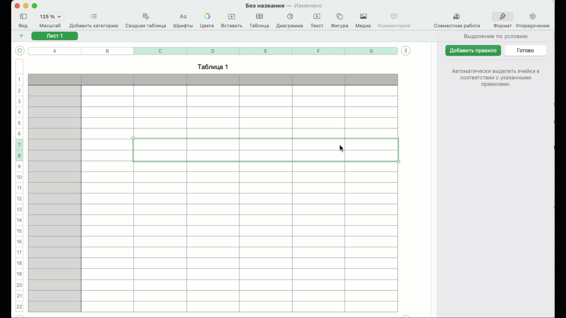 - В выпадающем меню выберите "Условное форматирование" или используйте комбинацию клавиш Command + Option + C.
