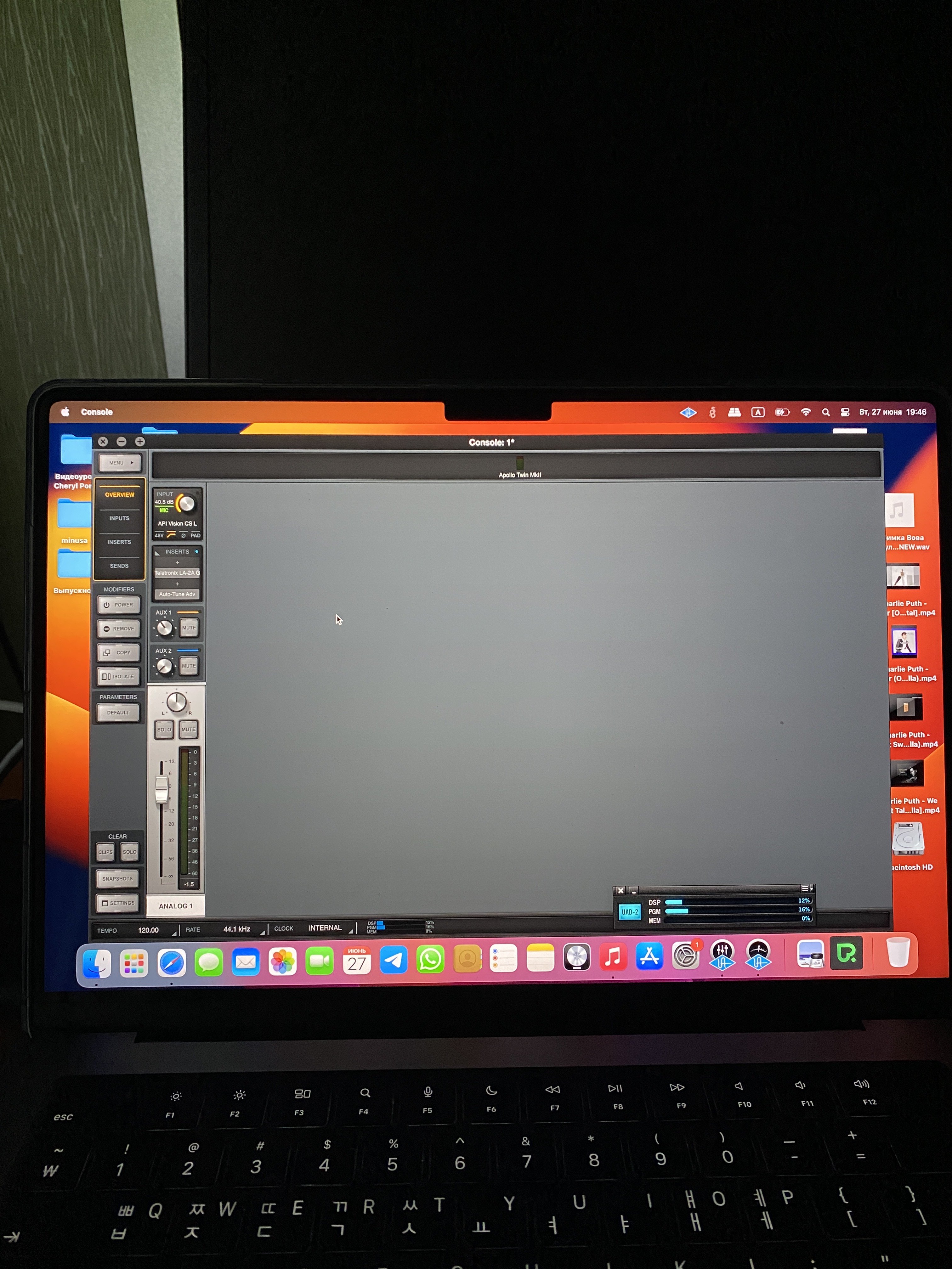 Здравствуйте товарищи! У меня проблема! Установил драйвер на console моей карты APOLLO TWIN , компьютер MacBook M1 Pro 14 и просто не открывается полностью консоль! Карта работает! Показывает всего один канал рабочий ! Я уже переустанавливал насколько раз! Пробовал прошлую версию, сначала console появилась, но сейчас снова исчезли каналы ! Снова удалил и переустановил, но не помогло! Помогите пожалуйста! Раньше был мак на Интел, никогда такой проблемы не было