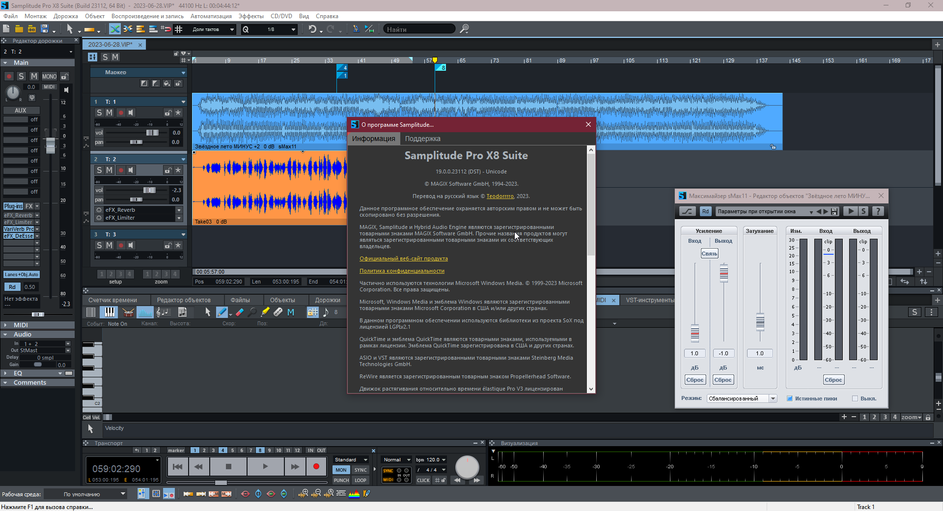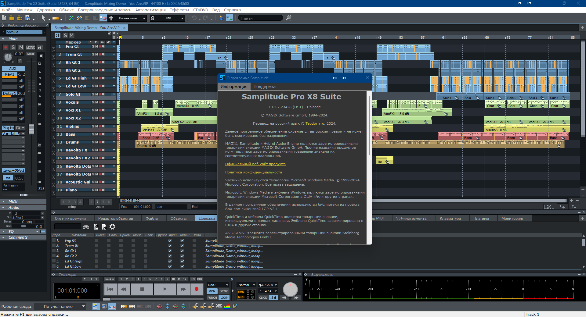 Русификатор Samplitude Pro X8 (Suite) 19.2.2.24222
