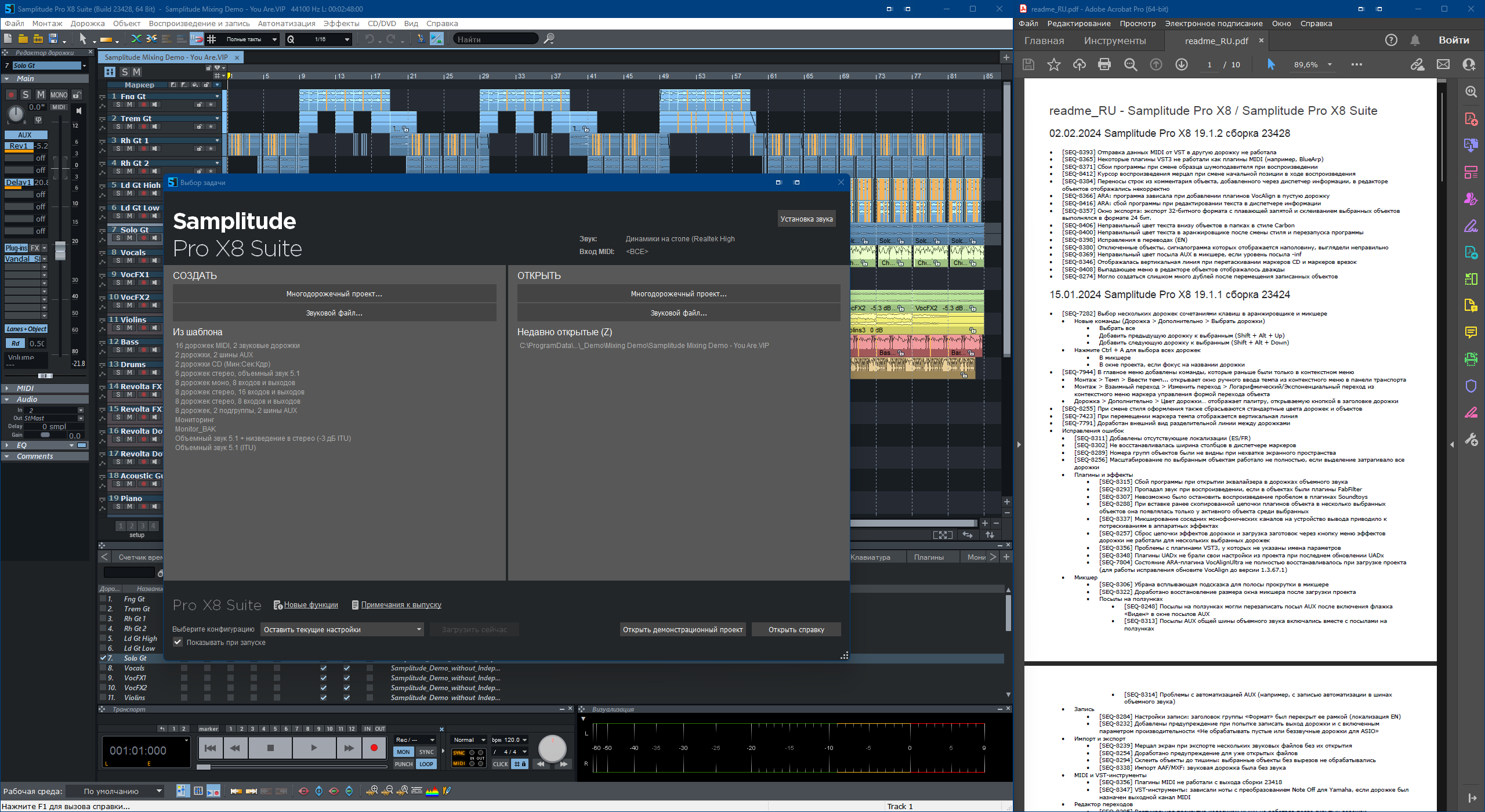 Скачать русификатор для 19.0.0.23112 можно тут: Samplitude Pro X8 Suite 19.0.0.23112 rus.exe