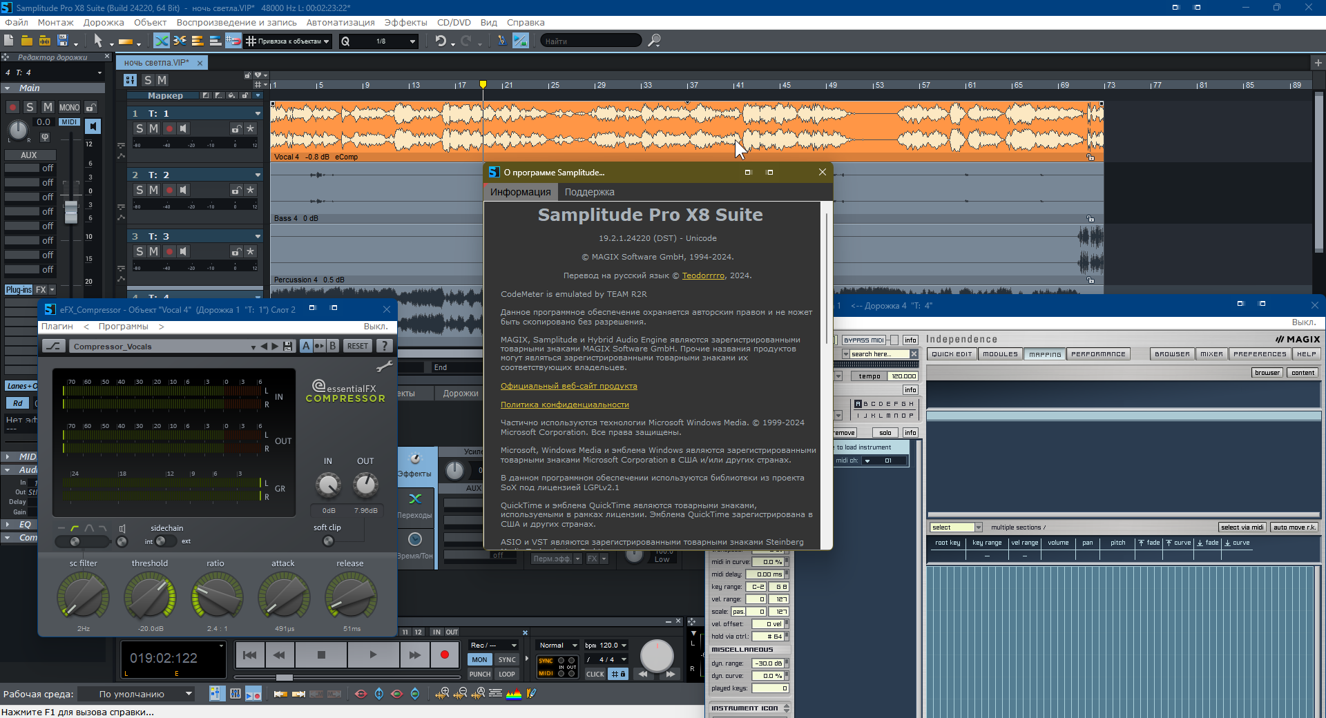 Сделал перевод для новой версии MAGIX Samplitude Pro X8 19.0.0.23112.