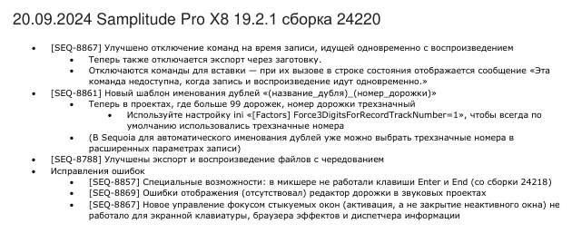 Список изменений Samplitude Pro X8 (19.0.0.23112) на русском языке см. во вложенном файле.