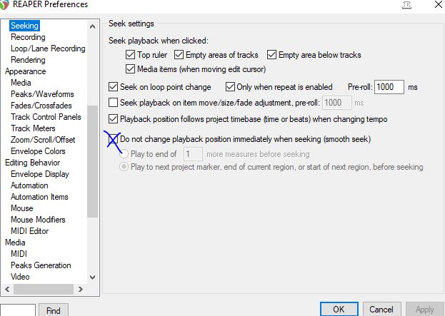 Напомните где настраивалась задержка воспроизведения при перемещение курсора?