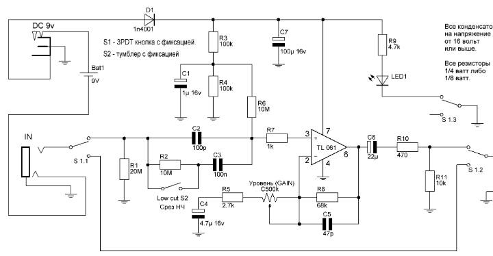 собрать простейший бустер типа MXR Microamp с XLR выходом