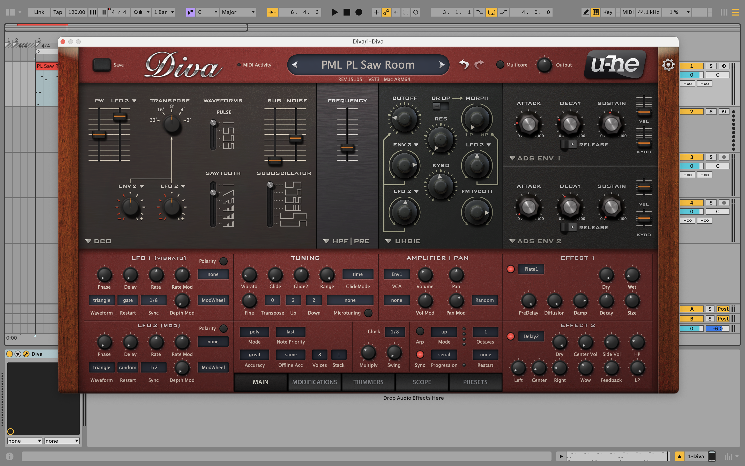 В архиве пресет и миди для Saw Room.