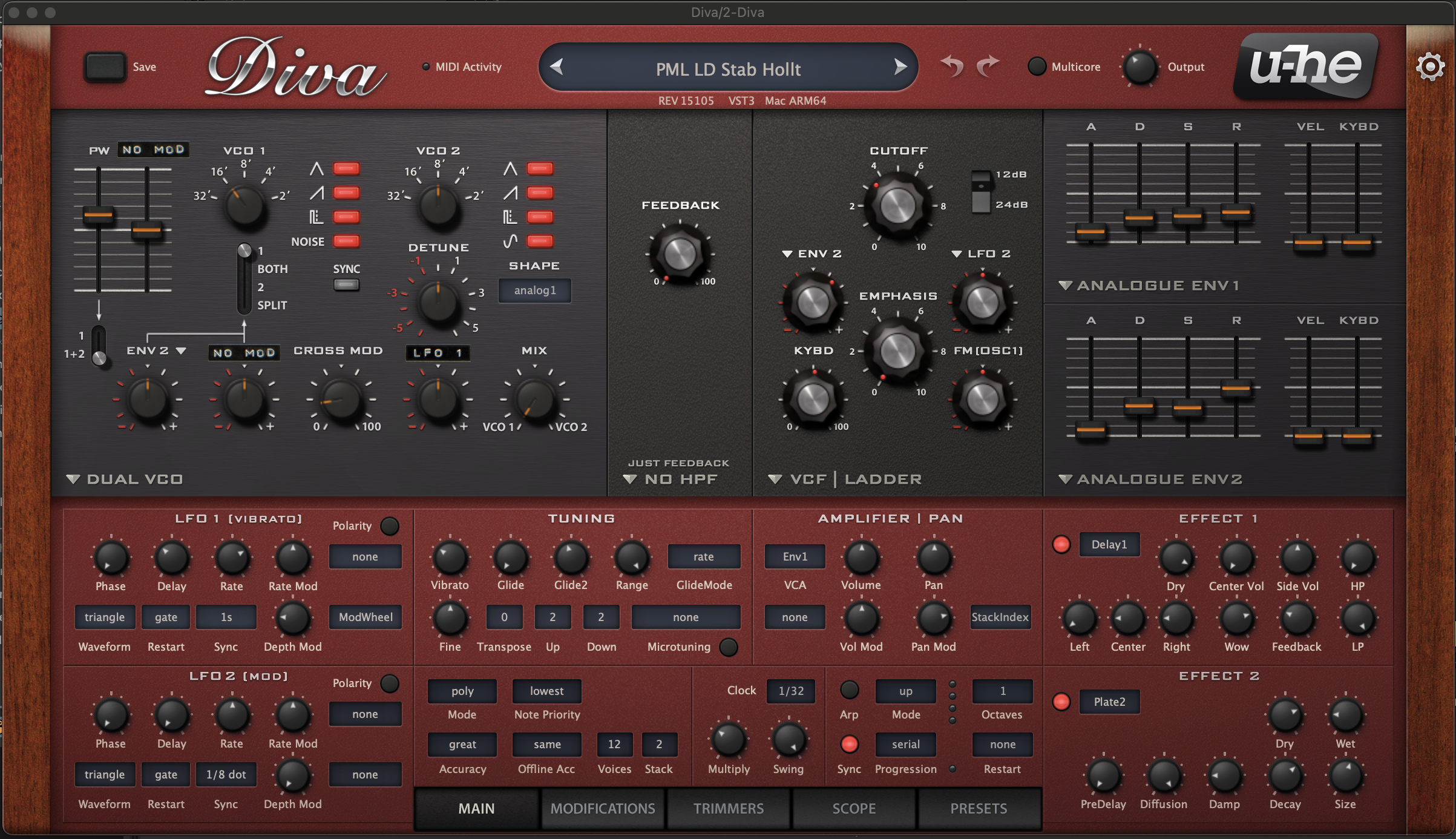 1 половину описания примерно вижу цепочку сигнала на морде синта, а вот с логикой фильтра тут в этом пресете пока не разобрался (дальнейшую череду событий со звуком не полностью еще нарисовал себе - нет цельной картины:) - начну с документации к Diva - почитаю про этот фильтр UHBIE) и как LFO 2 тут конкретно влияет - чтобы в голове вся цепочка сложилась. Но так даже интереснее.