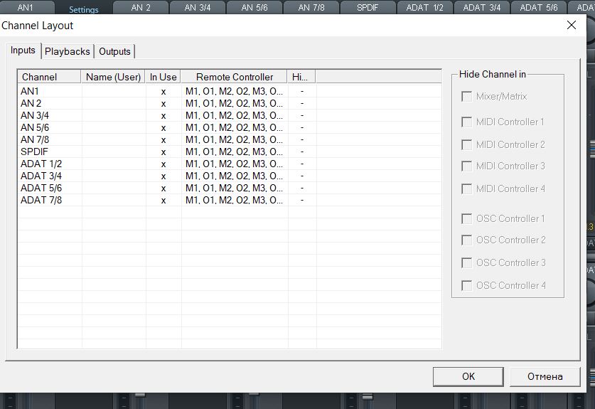В общем, итог такой, всё работает, но включается 48V не в ТМ, там просто нет у меня этой кнопки, а по кнопке Read Flash в настройках, а выключается 48V выключением карты. Если включаешь заново, то пока кнопку Read Flash не нажмёшь, 48V не работает. Такие танцы с бубном были бы не нужны, если бы кнопка 48v была в TotalMix, но там её нет у меня нигде ни в одной из 5 версий, которые я себе сохранял. Что это за глюк такой - так и осталось загадкой, в инструкции и на Ютубе в обзорах эта кнопка 48v есть у первого и второго каналов на вход, где line/miс.