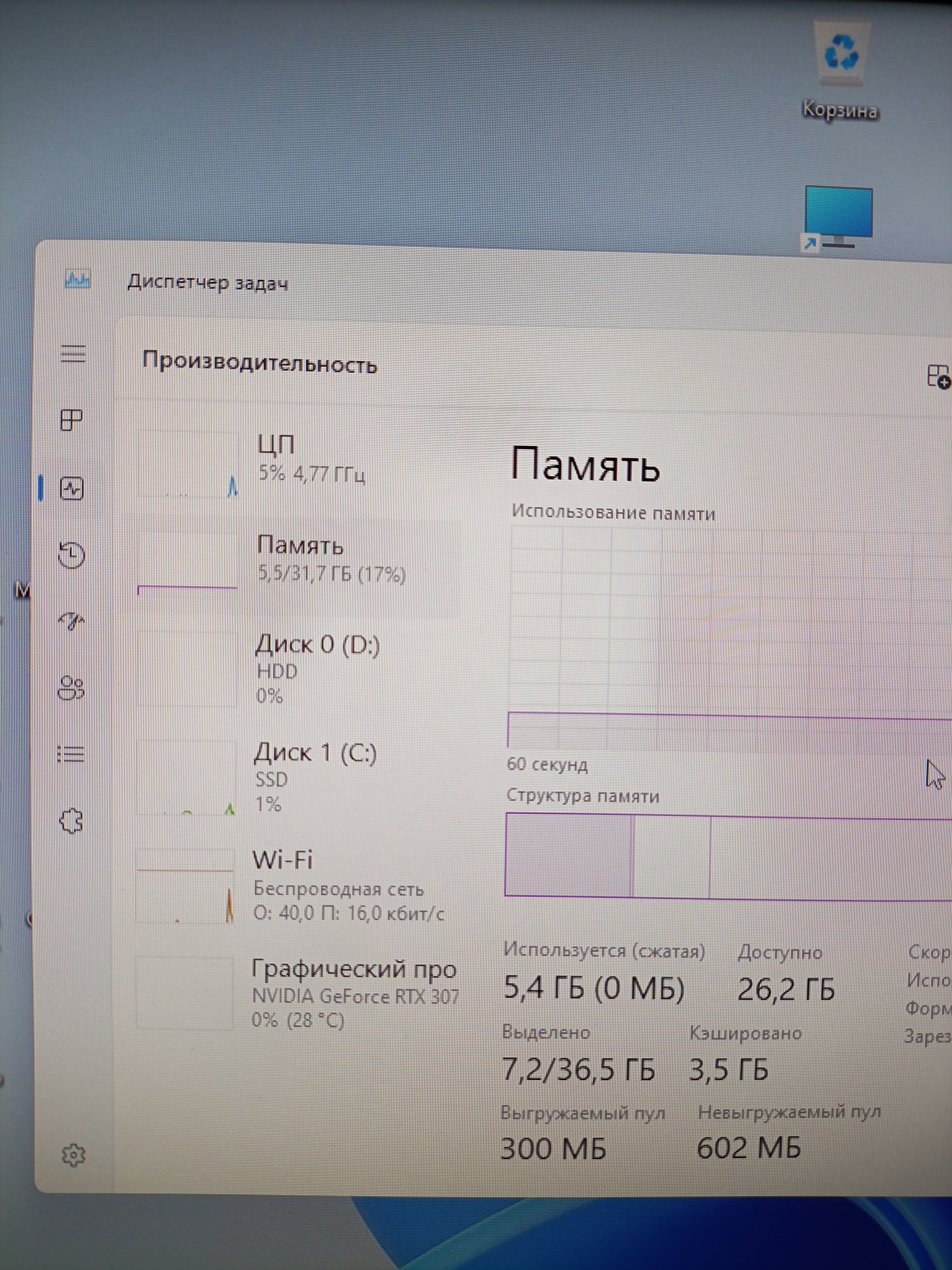 Оперативная память 32,0 ГБ (доступно: 31,7 ГБ)