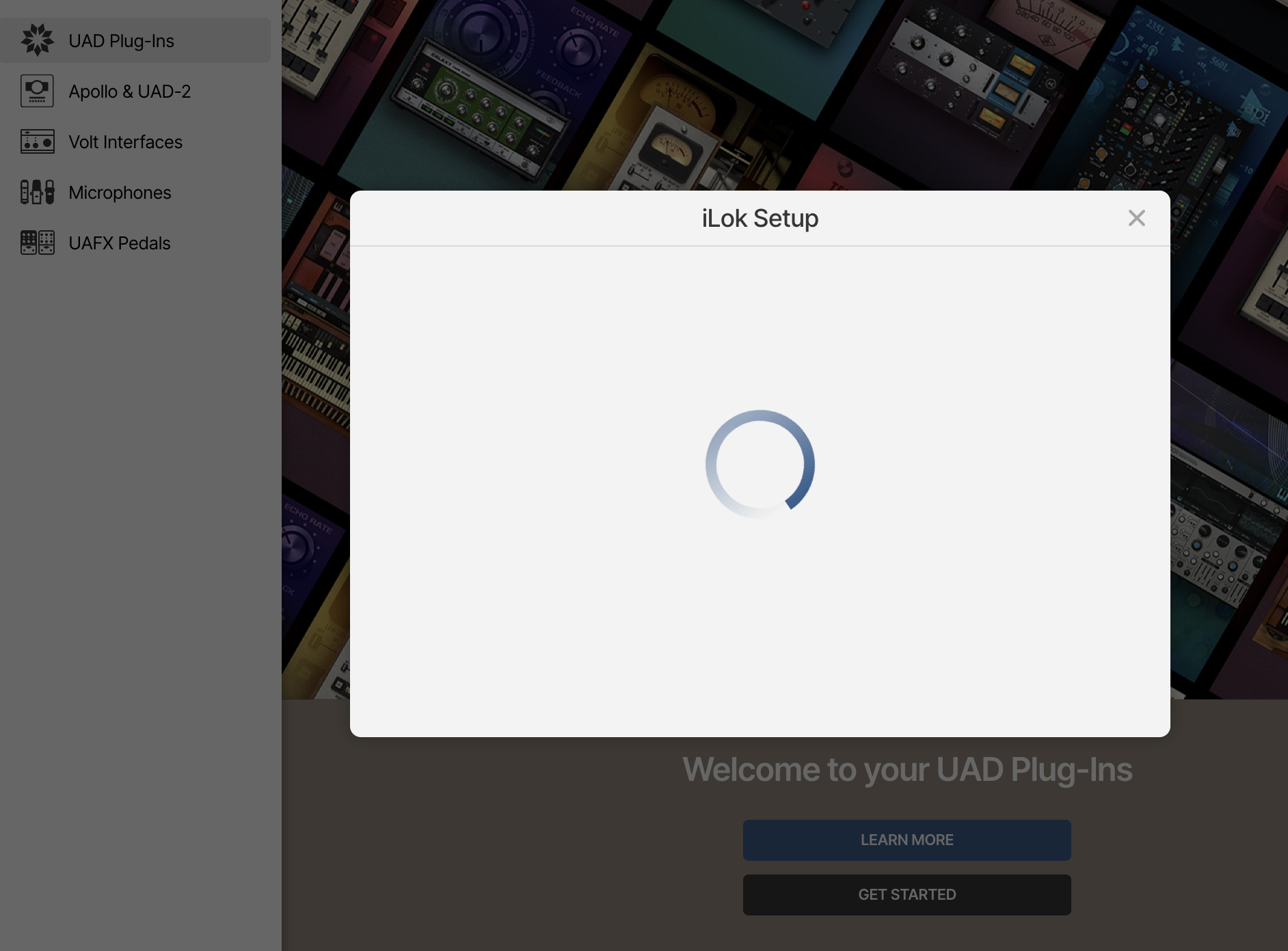 Привет, зарегил акк и вроде получил 1176 бесплатно, но в ua connect запросили ilok, ну ввёл на сайте, но не вошёл в аккаунт ilok хотя нужно видимо было. Смотрю ua сайт принял ilok ну хорошо, далее запускаю опять ua connect iLok user ID есть там уже, но в UAD Plugins нажимаю get started появляется белый квадрат и виснет, а потом ilok setup с синим кружочком и исчезает окошко тоже белое. Это блок от UA или из за того что не вошёл полноценно в Ilok аккаунт?