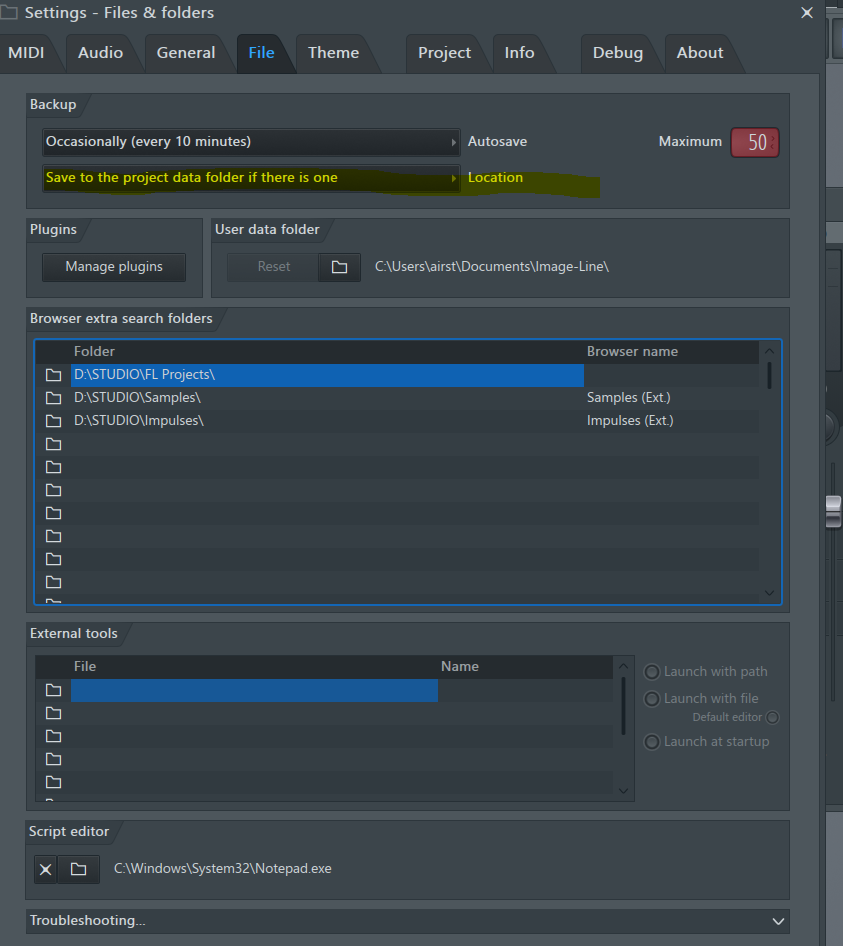 Друзья, а такое возможно, чтобы папка Backup отсутствовала вообще? Сейчас хотел восстановить покрашенный проект и на удивление обнаружил, что в папке Image-Line - FL Studio 10 - Data папки бэкапа ВООБЩЕ НЕТ! Я с таким впервые сталкиваюсь, хотя в менеджере настроек в General Settings - Undo History установлено 20... И как быть?