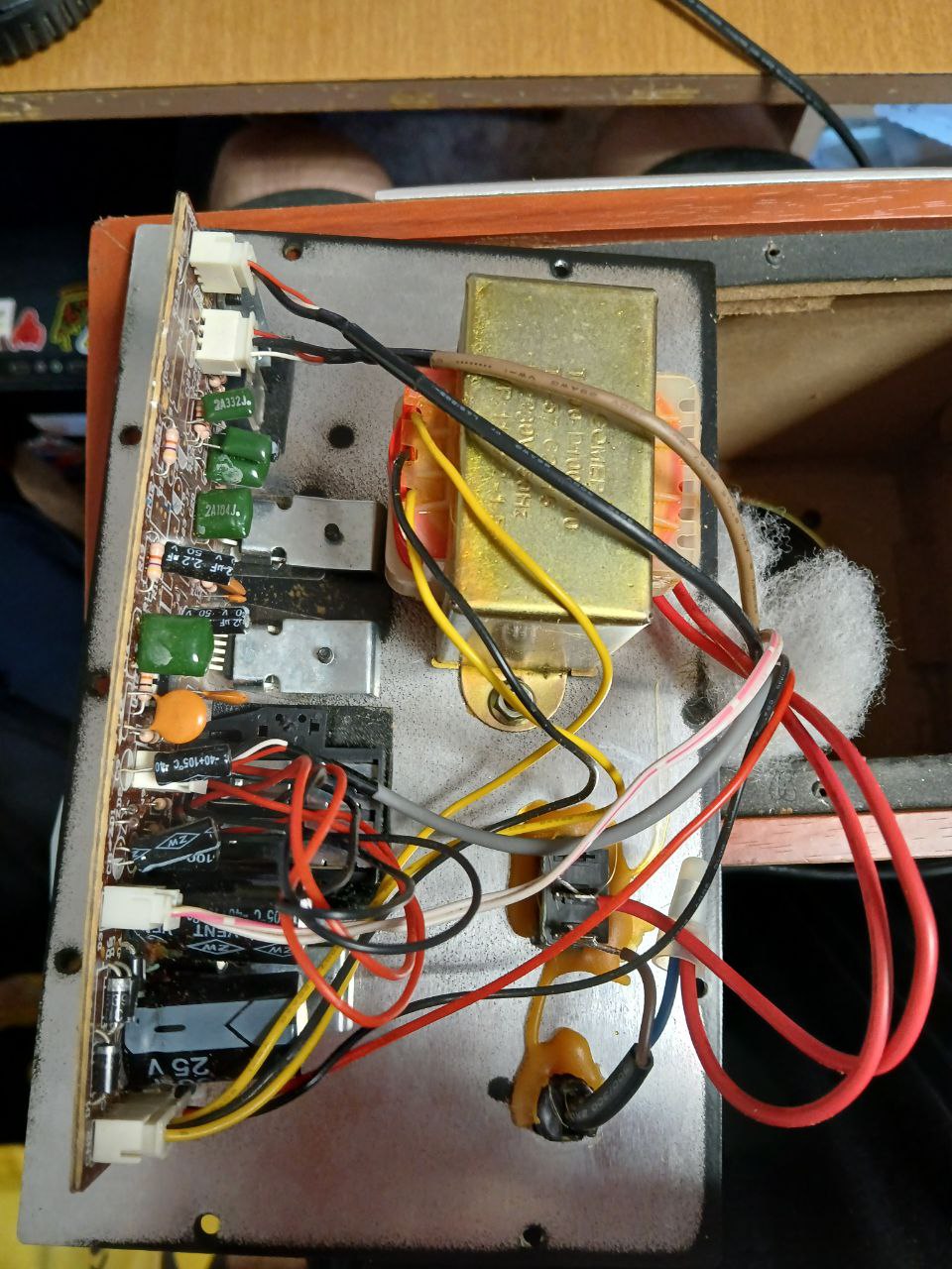 Имеется домашняя акустика Dialog W-2000. При включении идет равномерный громкий гул независимо от выставленного уровня громкости. Покопался в интернетах, вроде говорят, что проблема с усилителем звука. Разобрал, нашел единственную микросхему, на которой одному конденсатору немного грустно. Вопрос: в нем ли проблема, поможет ли его замена или уже вся схема из-за него погорела?