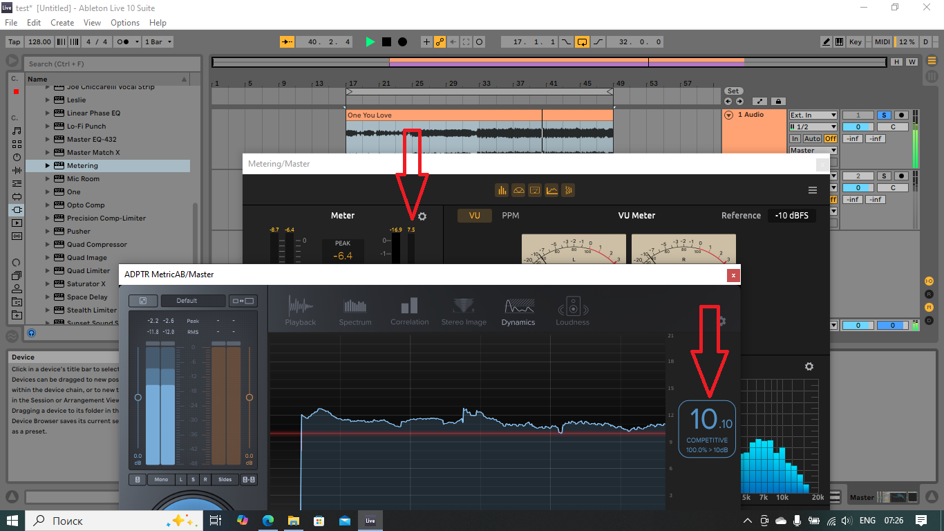 Динамический диапазон (DR), интересно почему плагин t-racks - 7.5 показывает, а levels и Metric AB - 10.10 приблизительно одинаково. С levels от mastering the mix поняино , скорость измерения болеее быстрее по этому более точнее показывает чем Metric AB, но не настолько разные цифры 7.5 и 11. Я сомневаюсь что в ik multimedia глупые люди сидят , интересно чем это обосновывается, такая разница
