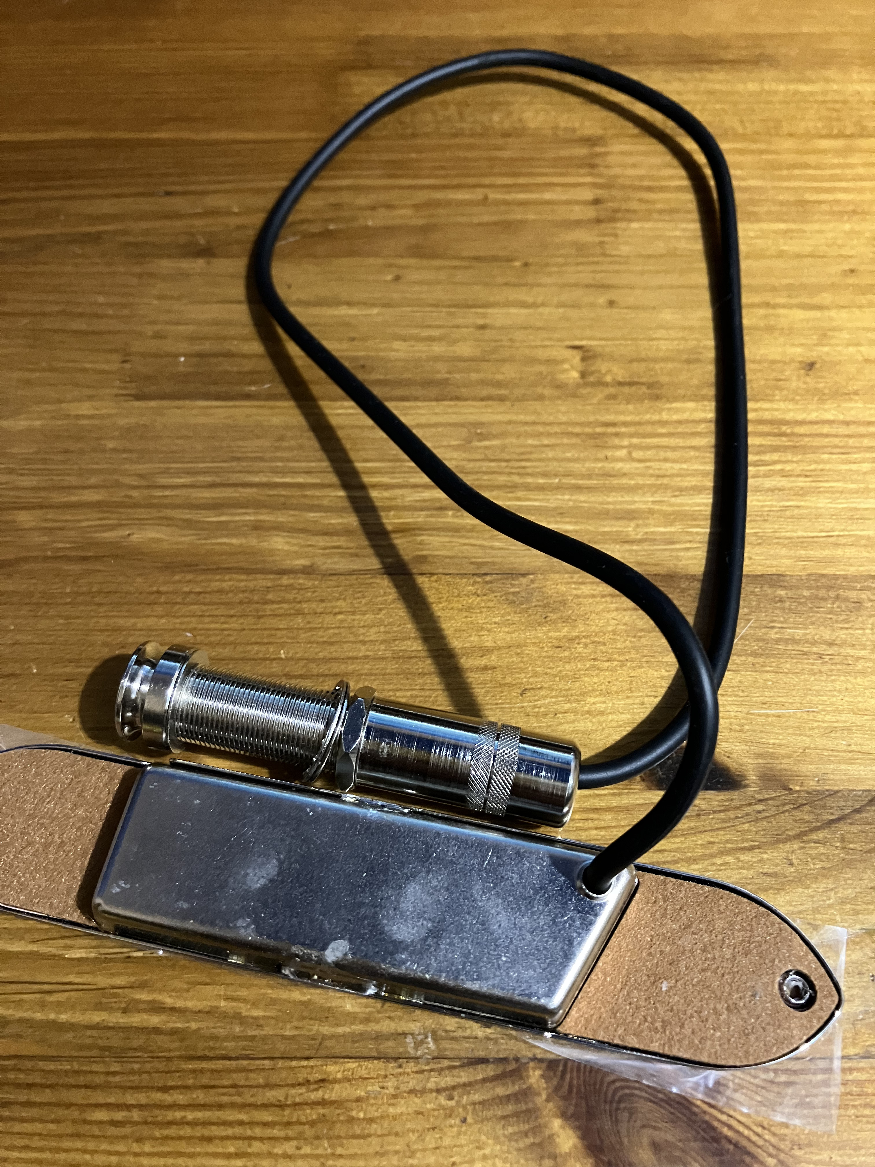 Присоединюсь, у меня на одной из акустических гитар похожая история. Постоянный фон, если по старинке кинуть проводок от верхней струны на корпус джека - фон пропадает. Технически это меня не напрягает, т.к. гитару пишу через микрофон. Но кто знает - вдруг где поиграть выберусь, где нужно подключаться проводом будет.