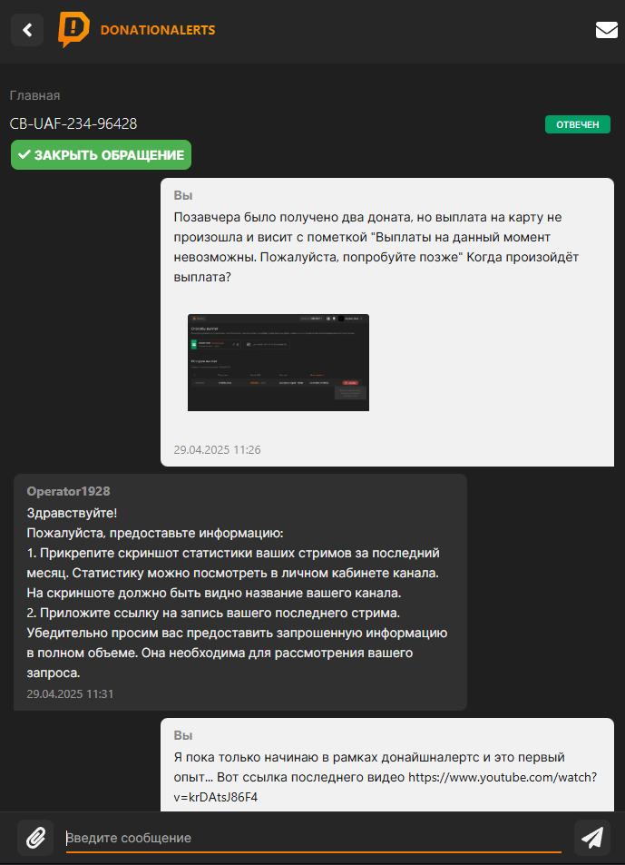 В общем, решил я получить опыт в рамках донат системы DonationAlerts, рассматривая её, как некоторую возможность хотя бы минимальной финансовой поддержки за свои разработки в Реакторе и регистрируясь, вообще не ожидал никаких донатов, просто решил попробовать и разместил ссылку под своим видео на ТыТрубе и в библиотеке Реактора...Однако в этот же день был получен донат, чему я очень обрадовался...