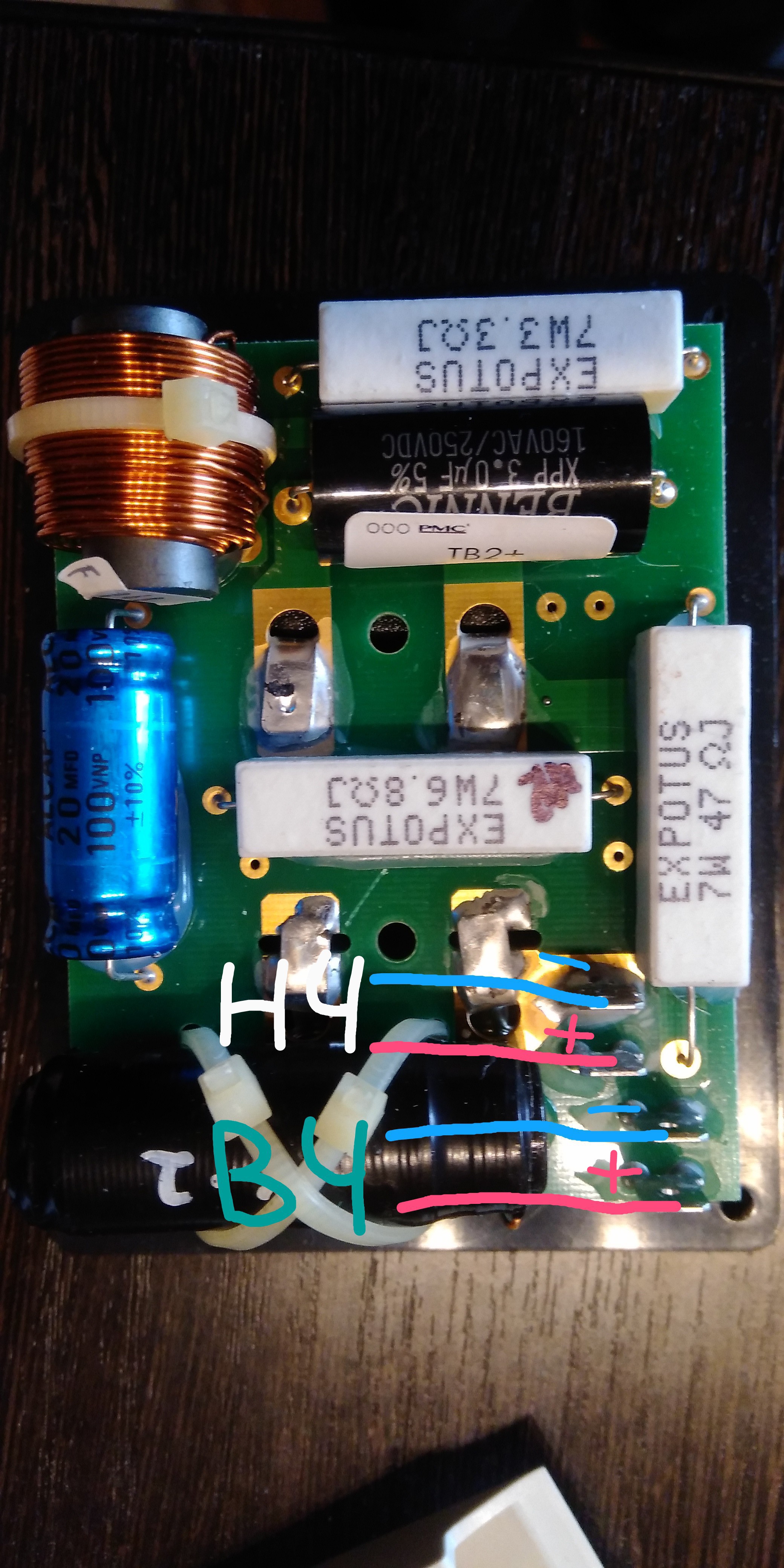 Плюсовой выход на пищалку должен идти из точки где соединяются резистор 47 ом и 3.3 омничего не перепутал при подключении динамиков к кроссоверу?