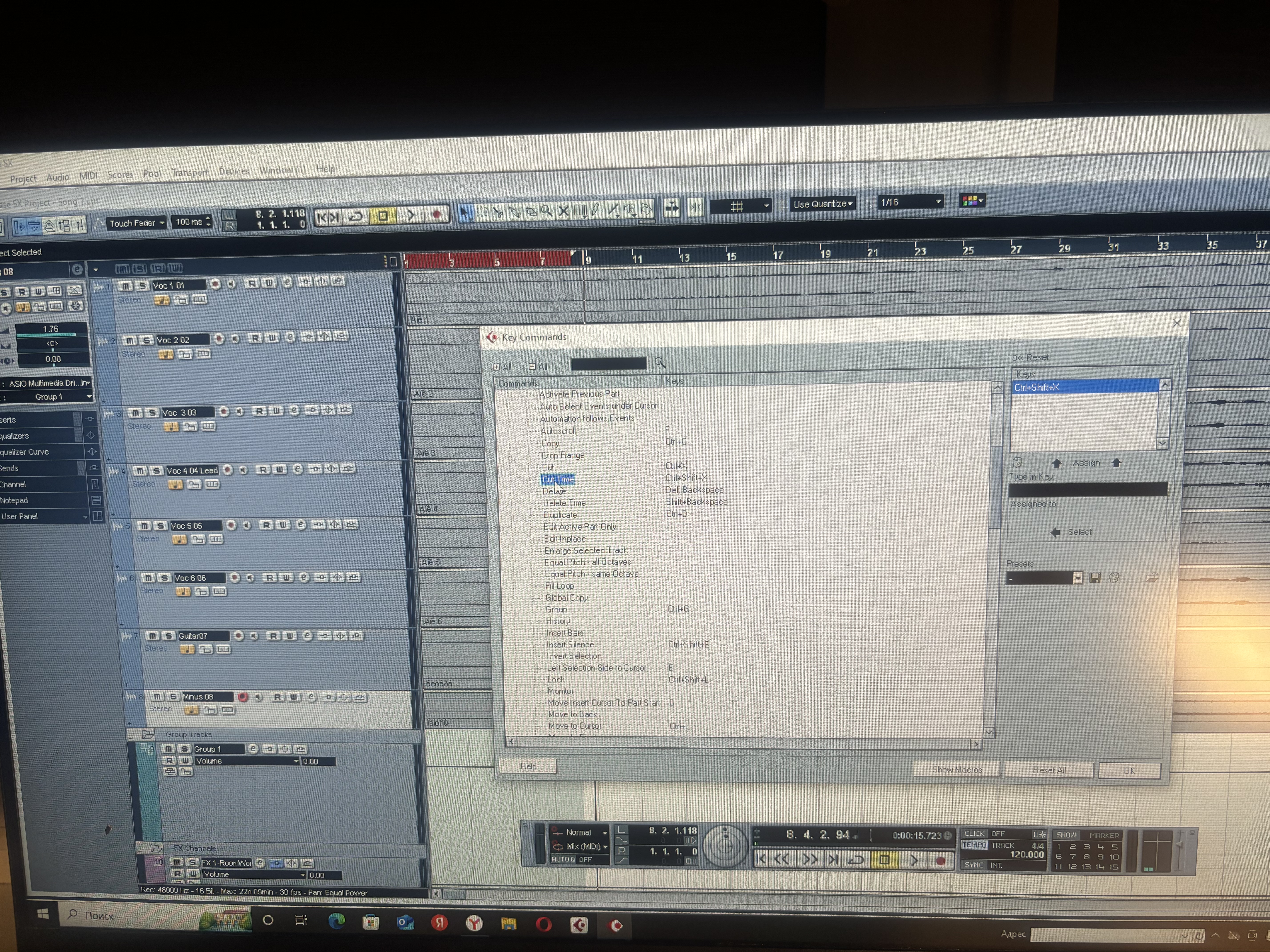 Пытаюсь удалить фрагмент многоканального проекта, используя команду ctrl+shift+x. Ознакомился с несколькими советами в сети. Сбросил команд кей на дефолт и на классик, убирал сетку, выставлял квантанизацию, параллельно выделял треки, выделял сами аудиополосы. Также пытался и del и split loop нажимать Выделял с помощью range selection и object selection. Прошу помочь.