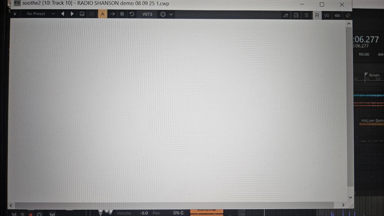 Одни формата vst3 открываются спокойно, другие - белый чистый лист (Waves и Soothe НЕ отображатся, а к TRacks, к примеру, отображаются). Происходит это и в новом Сонаре и в уходящем Бэндлэб.
