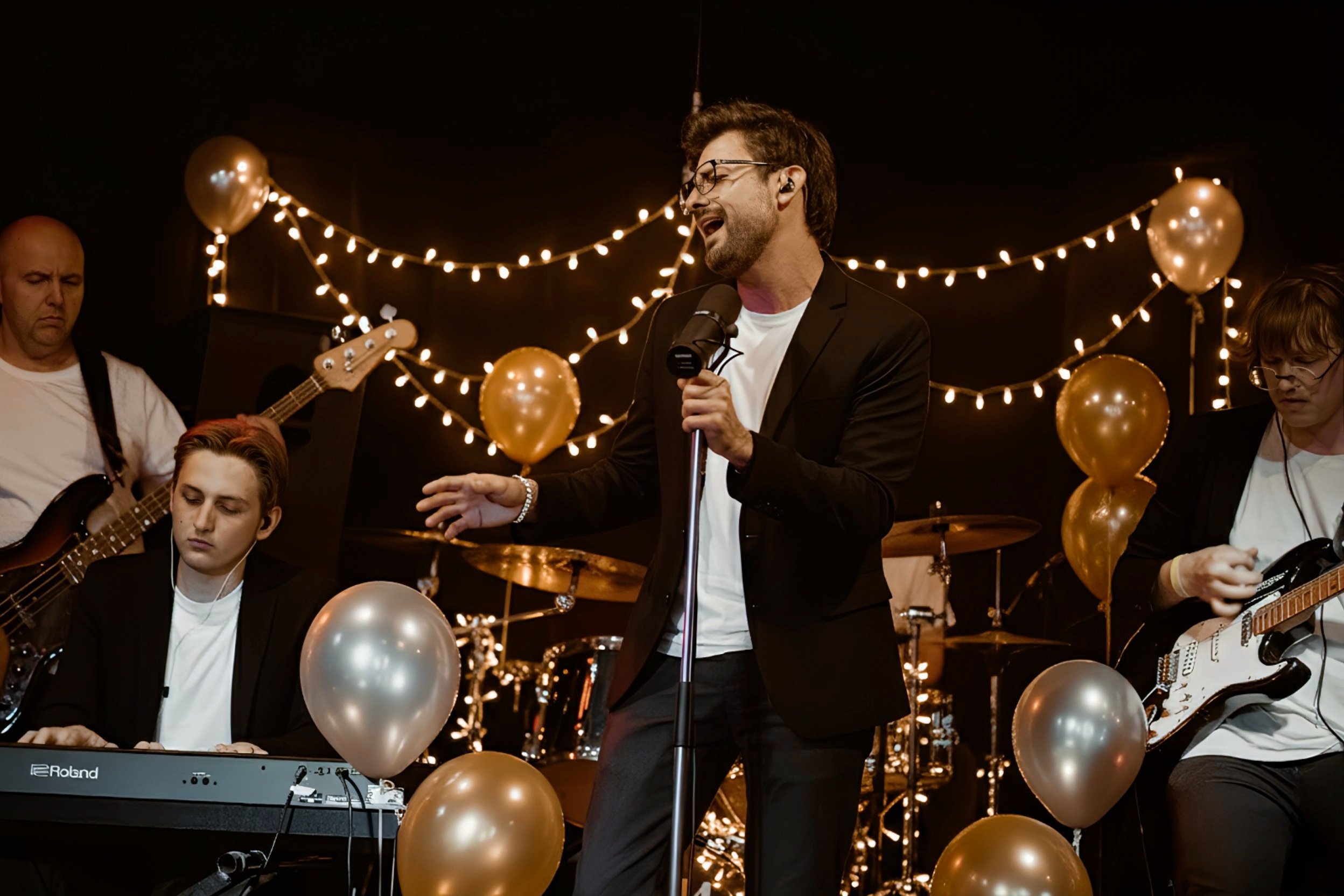 Кавер-группа из 4 профессиональных музыкантов — вокал, барабаны, клавиши, бас.