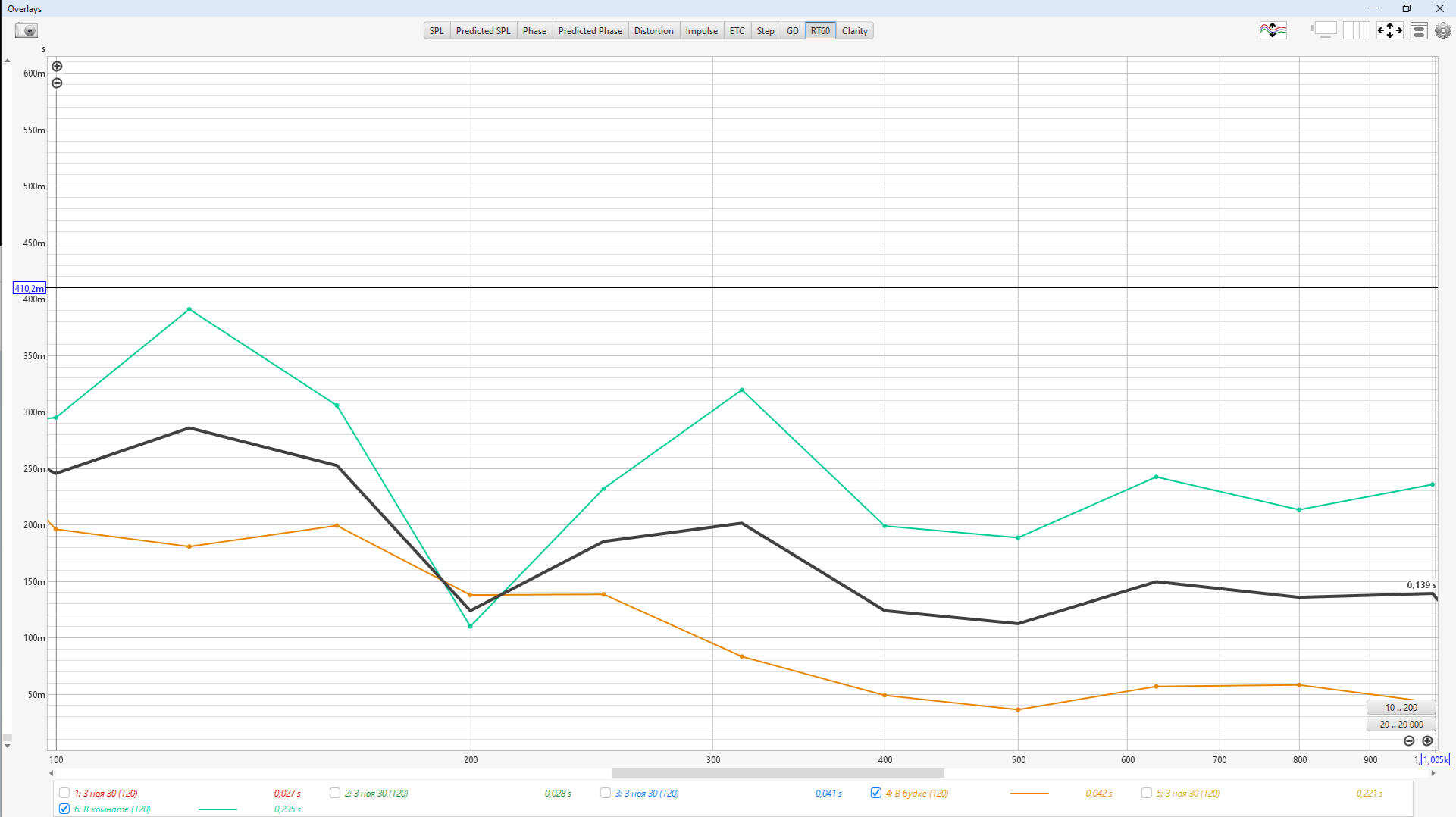 Уберите со стен кабинки всё поглощение (которое возможно) и повторите измерение внутри кабинки.