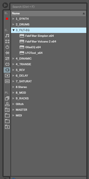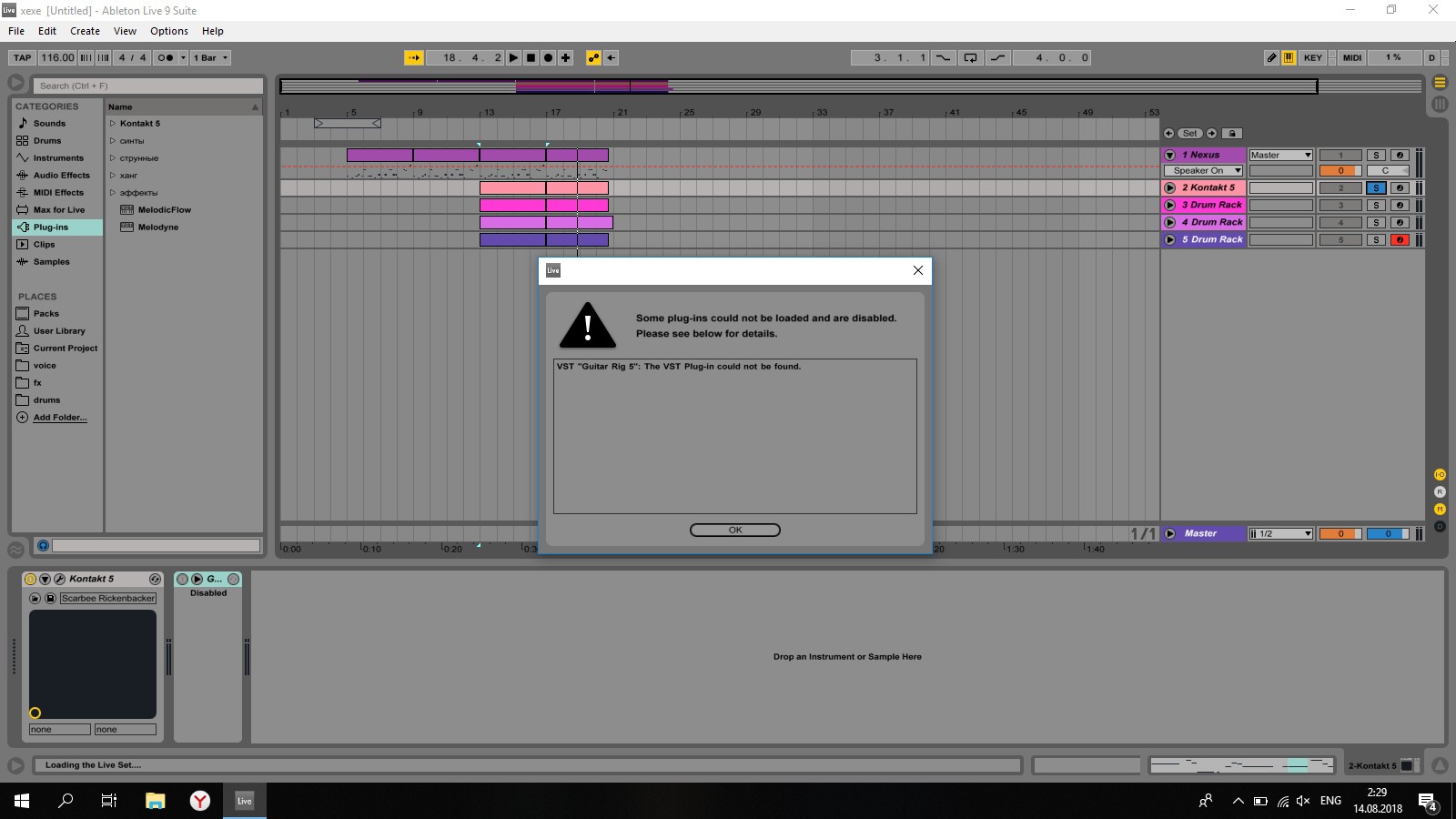 Файла options.txt в папках ableton'a не нашел, создал сам, всё появилось, но почему то у плагинов в ячейках, и родных и внешних, не отображаются названия