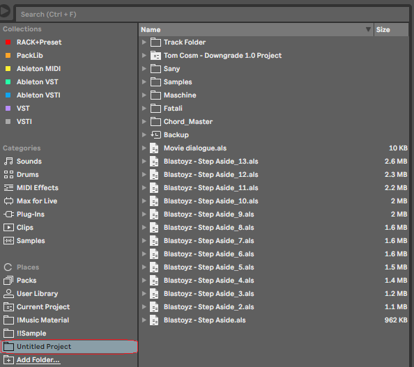 @Dark Electra, папку с проектами закреплять - не вариант: я именно Ableton прошу совета настроить (также, как на прилагаемом скрине)... Но вкладку, на которой можно добавить folder - не нахожу (у меня, самого - бар не где-нибудь, сбоку, а на самом почётном центральном месте). :)