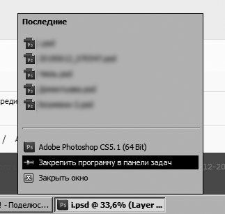 @CTEPEO3ABP, у меня 7-ка, к примеру, в фотошопе по правому клику мышей на вкладке открытого фотошопа у меня отображается 5 последних файлов. Я вобще ничего не настраивал для этого, так как даже никогда этим не пользовался, все вроде как должно работать по дефолту.