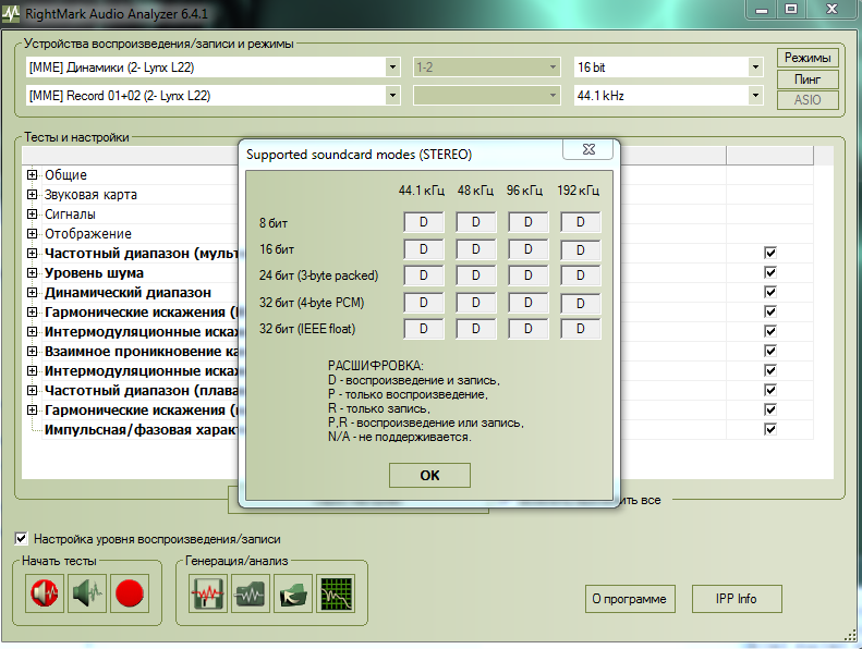Подскажите пожалуйста по входам "Lynx L22" система не видит карту по входам,ни с сигналом на входах,ни собственных шумов карты не видит... С выходами все в порядке.Драйвера последние,винда семерка 64 разрядная,материнка асус P8Z77-V.Как записывающее устройство определяется но индикация сигнала при проверке записи в винде отсутствует.Может какие хитрости,тонкости имеются? Асио стоит.Джульку ставлю,все сразу определяется как положено и с голыми гнездами уровень собственных шумов -140 дБ,а с линкс пусто...